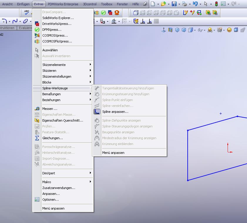 Hi, Versuch mal deinen Riemen als eigene Skizze darzustellen. Anschließend nimmst du den Befehl Spline anpassen (siehe Bild), dann kannst du über eine einfacht tangentiale Verknüpfung deine Scheibe an der Bahn entlanglaufen lassen. Greets Eine Antwort auf diesen Beitrag verfassen (mit Zitat/Zitat des Beitrags) IP |