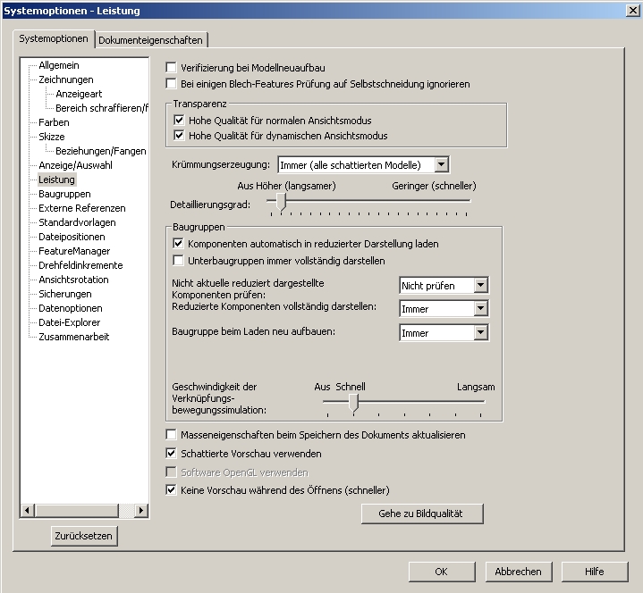 Hab's mir auch in SW2009 angeschaut. Man sieht das es durch die Bildqualität besser wird (vor allem im Modell), aber in der Zeichnung bleiben die Linien an manchen Stellen "unsichtbar". Ich würde im Augenblick damit leben und würde es als Beispiel an SolidWorks mailen. MFG Robert Hess. Eine Antwort auf diesen Beitrag verfassen (mit Zitat/Zitat des Beitrags) IP |