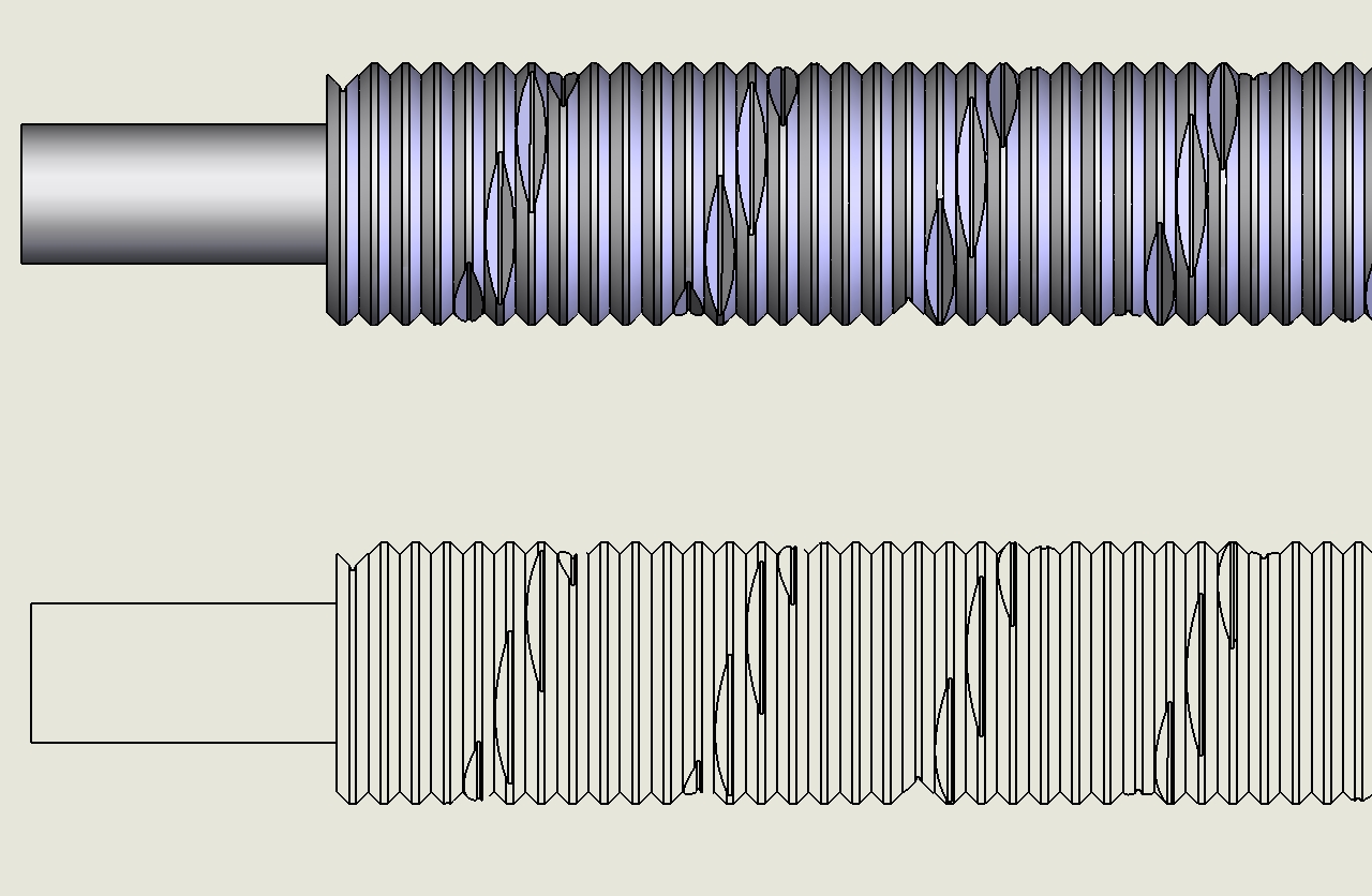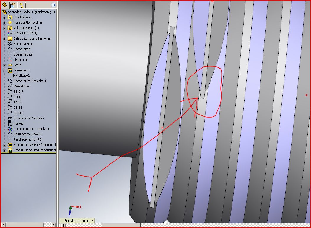 Hallo Eduard, anbei eine Idee. Leider nur als Bild, weil ich jetzt gerade sehe, daß Du nur SW2006 hast. Sollte Dir aber reichen, um Deine Welle zu erstellen. Soll der Winkelversatz von einer Bearbeitung zur Nächsten eigentlich 50° sein? MFG Robert Hess. P.S: Ich habe mir um den Einbau der Bauteile (vermutlich Messer oder ähnliches) keine Gedanken gemacht. [Diese Nachricht wurde von Robert Hess am 13. Mai. 2009 editiert.] Eine Antwort auf diesen Beitrag verfassen (mit Zitat/Zitat des Beitrags) IP |