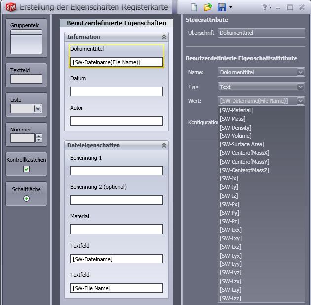 Ich hätte hierzu noch eine Frage ohne gleich einen neuen Thread zu öffnen. Ich hab folgendes Problem bei der Eigenschafts-Registerkarte und zwar bekomme ich einfach den Namen des aktuellen Modells nicht in das oberste Feld (siehe Bild). Leider gibt es auch keinen entsprechenden Reiter unter "Wert" und die Hilfe verrät mir dazu auch nicht sehr viel. Vielleicht kann mir da einer weiterhelfen?! Gruss