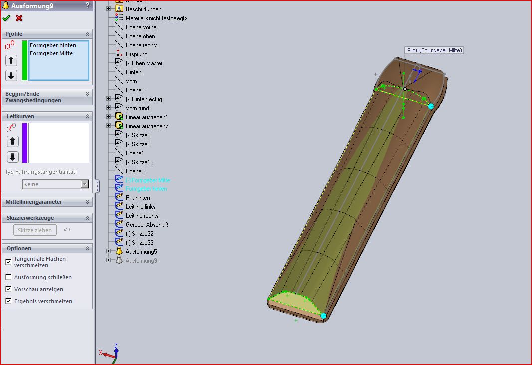 und wieder bräucht ich eine Ausformung, und wieder brauch' ich - bitte schön - eure Hilfe! mit den o.g. Verfahren komme ich nicht zum Ziel.  irgendwie raff ich das nicht! Ich hätte gerne eine Volumskörper aus folgenden Skizzen: * Skizze31 (oder aus derne Teilen - Leitlinie links/rechts) * Rücken (oder aus dessen Teilen Skizze 32 / 33) * Formgeber hinten Formgeber vorne das beste von mir erzielte ERgebnis seht ihr im Zipfile, hier ist aber leider der "Formgeber hinten" nicht eingeschlossen. Ich habe alle meine "Versuchs"-Skizzen belassen, ich hoffe es ist dadurch nicht zu unübersichtlich [Diese Nachricht wurde von wakizashi am 17. Aug. 2009 editiert.] Eine Antwort auf diesen Beitrag verfassen (mit Zitat/Zitat des Beitrags) IP |