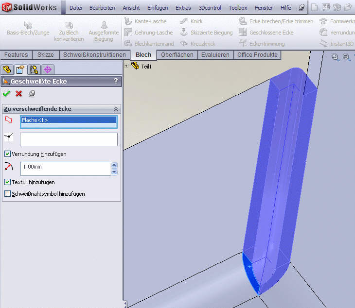 Hallo Klaus, die geschweißte Ecke geht nur bein einfachen Ecken, leider. Siehe Bild. Was mir auch nicht gefällt, dass nach der geschw. Ecke keine weiteren Features hinzugefügt werden können :-( Gruß Marco ------------------ Papa 2005 u 2007 Gib jedem Tag die Chance, der schönste Deines Lebens zu werden. Eine Antwort auf diesen Beitrag verfassen (mit Zitat/Zitat des Beitrags) IP |