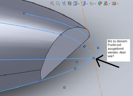 Moin alle zusammen, meine Frage bezieht sich auf das Ausformen. Und zwar habe ich Probleme eine Ausformung entlang an 4 Leitkurven bis zum Endpunkt zu konstruieren. Bisher habe ich es mit einem Miniprofil kurz VOR dem Endpunkt gelöst. Allerdings denke ich, dass es doch mit Sicherheit eine bessere Lösung dafür geben muss. Auf den Bild dürftet Ihr erkennen was ich meine. Wär top, wenn jemand von euch einen Rat hätte. Beste Grüße aus Berlin Magnus Eine Antwort auf diesen Beitrag verfassen (mit Zitat/Zitat des Beitrags) IP |