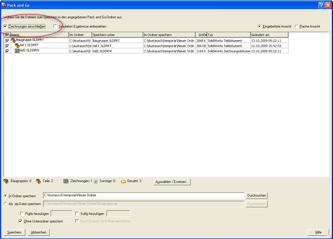 Hallo Sasha, hast du auch den Haken bei "Zeichnungen einschließen" gesetzt? Dann tauchen die Zeichnungen auch in der Pack&Go-Liste auf. Dann kannst du in den Feldern mit dem Pfad und den Dateinamen doppelklicken und diese Angaben verändern. Klappt bei uns schon immer hervorragend, auch mit Zeichnungen. Was klappt denn bei dir nicht? ------------------ Gruß, Stephan "Optimismus ist lediglich ein Mangel an Informationen" BOFH Eine Antwort auf diesen Beitrag verfassen (mit Zitat/Zitat des Beitrags) IP |