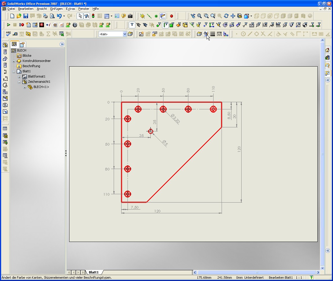 Meine Glaskugel sagt mir gerade, daß du die farben auf dem Bildschirm schon richtig hast! Außerdem sagt sie mir noch daß wir uns in einer Zeichnung/Drawing befinden und nicht etwa in einem Teil/Part oder einer Baugruppe/Assembly!