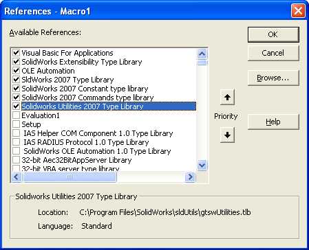 Wenn dort welche auf SolidWorks 2009 zeigen sollten, muss Du die gleichen Verweise für die 2007 Version suchen und aktivieren.