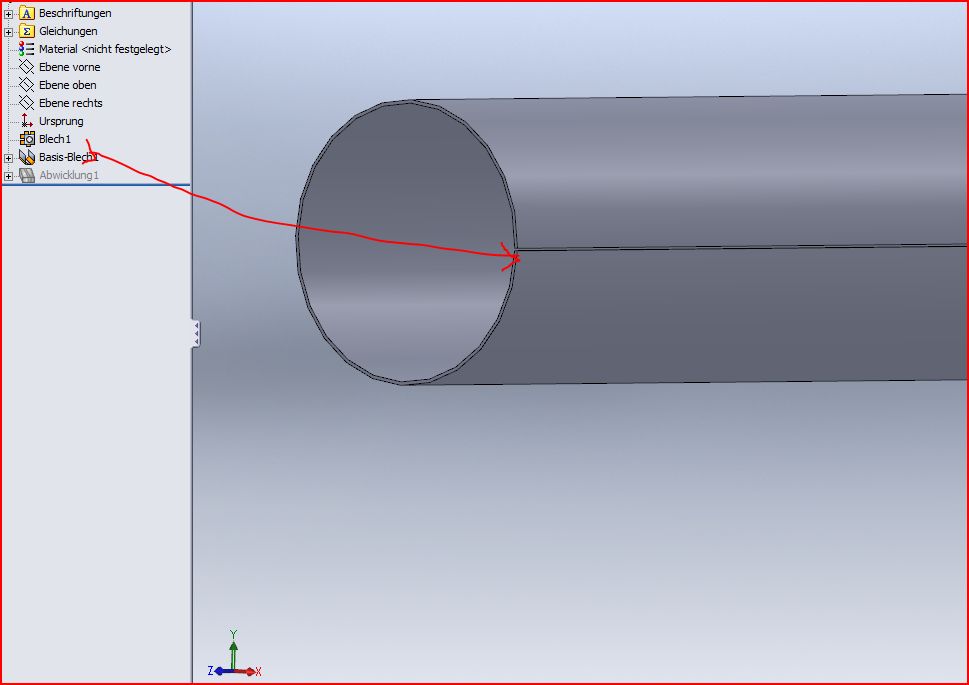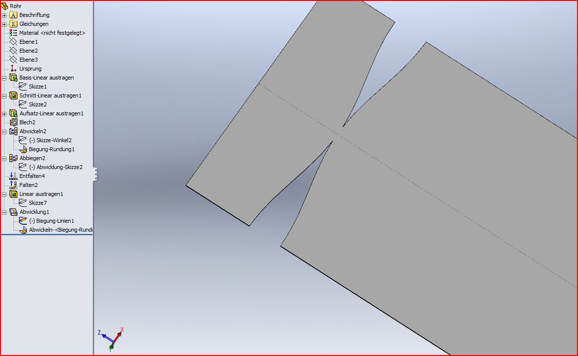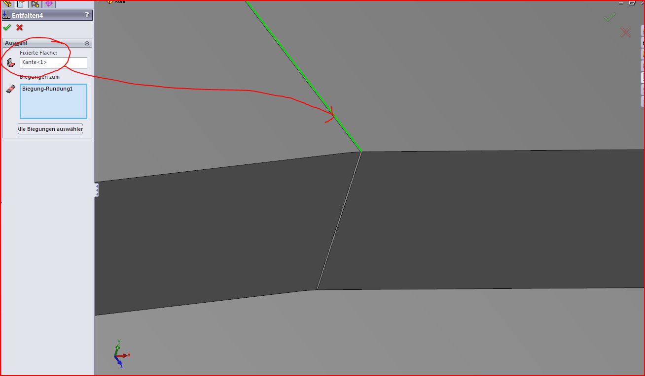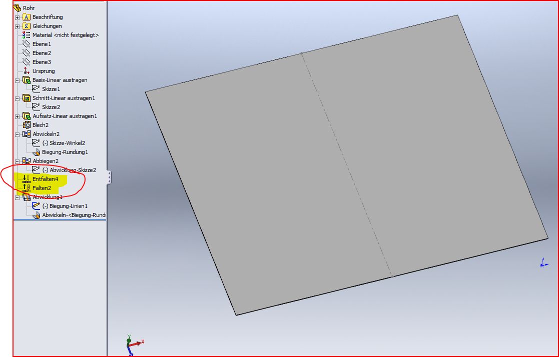 Hallo chris, was Dir fehlt ist einmal falten entfalten das bringt SWX zur Abwicklung! Aber nur wenn Du wie im Screenshot eine Kante auswählst (auch da Achtung es funzt nicht jede Kante ) (Im Zweifelsfall alle mal nacheinander ausprobieren) Damit hast Du Dein Rohr zwar erstellt und kannst auch abwickeln aber bei den anderen Schnitten seh ich schwarz!Da kannst Du zwar das Rohr gerade mit Schnitten darstellen und abwickeln es aber nicht mehr biegen. MfG Andreas ------------------ Stillstand ist Rückschritt Eine Antwort auf diesen Beitrag verfassen (mit Zitat/Zitat des Beitrags) IP |