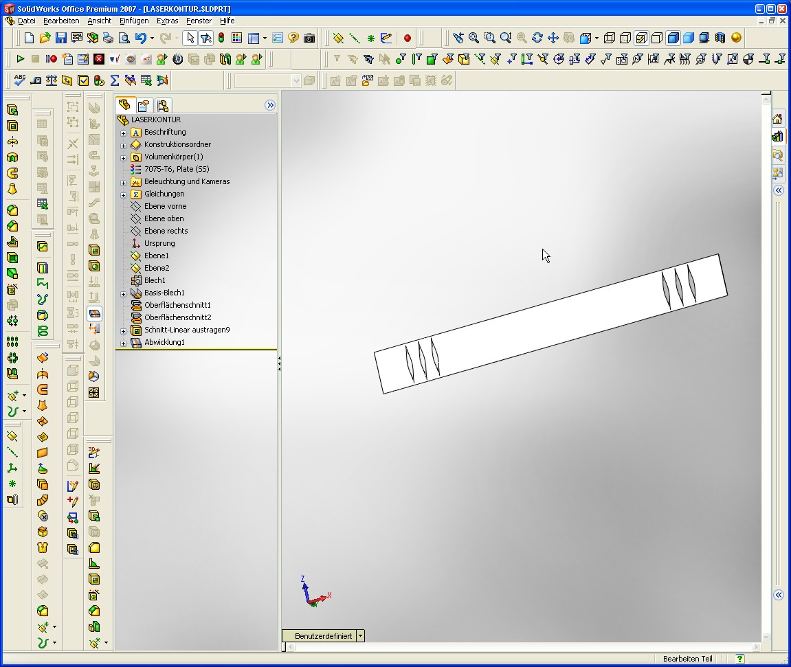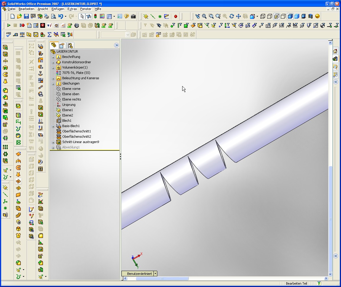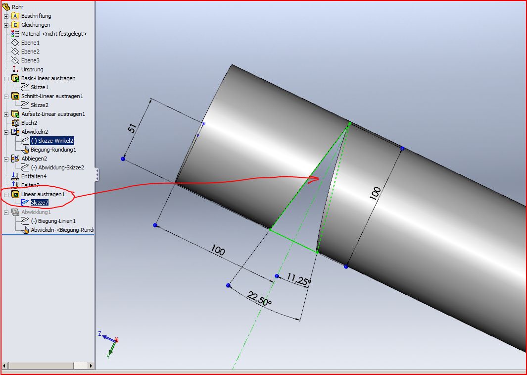 Hallo chris, was Dir fehlt ist einmal falten entfalten das bringt SWX zur Abwicklung! Aber nur wenn Du wie im Screenshot eine Kante auswählst (auch da Achtung es funzt nicht jede Kante ) (Im Zweifelsfall alle mal nacheinander ausprobieren) Damit hast Du Dein Rohr zwar erstellt und kannst auch abwickeln aber bei den anderen Schnitten seh ich schwarz!Da kannst Du zwar das Rohr gerade mit Schnitten darstellen und abwickeln es aber nicht mehr biegen. MfG Andreas ------------------ Stillstand ist Rückschritt Eine Antwort auf diesen Beitrag verfassen (mit Zitat/Zitat des Beitrags) IP |