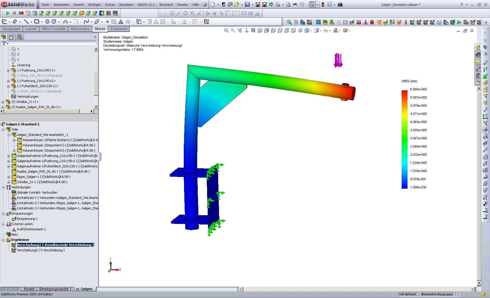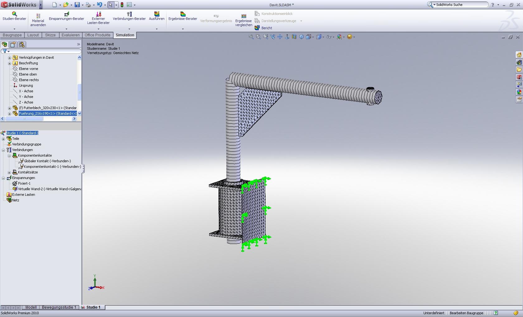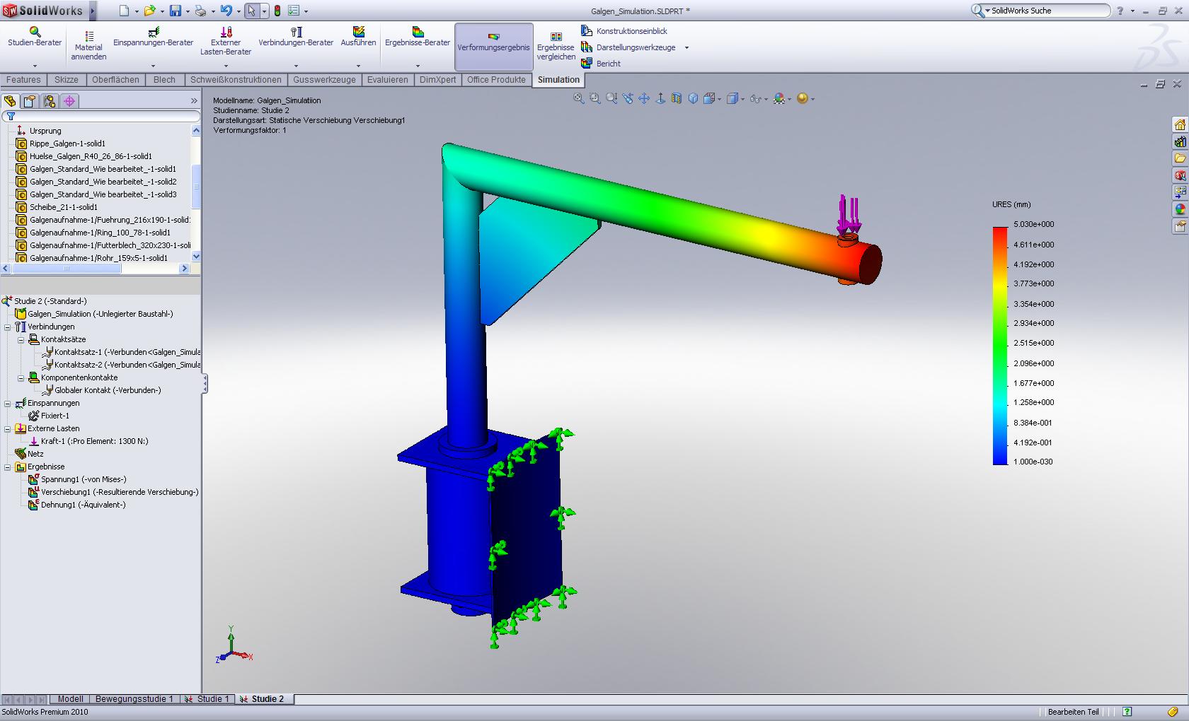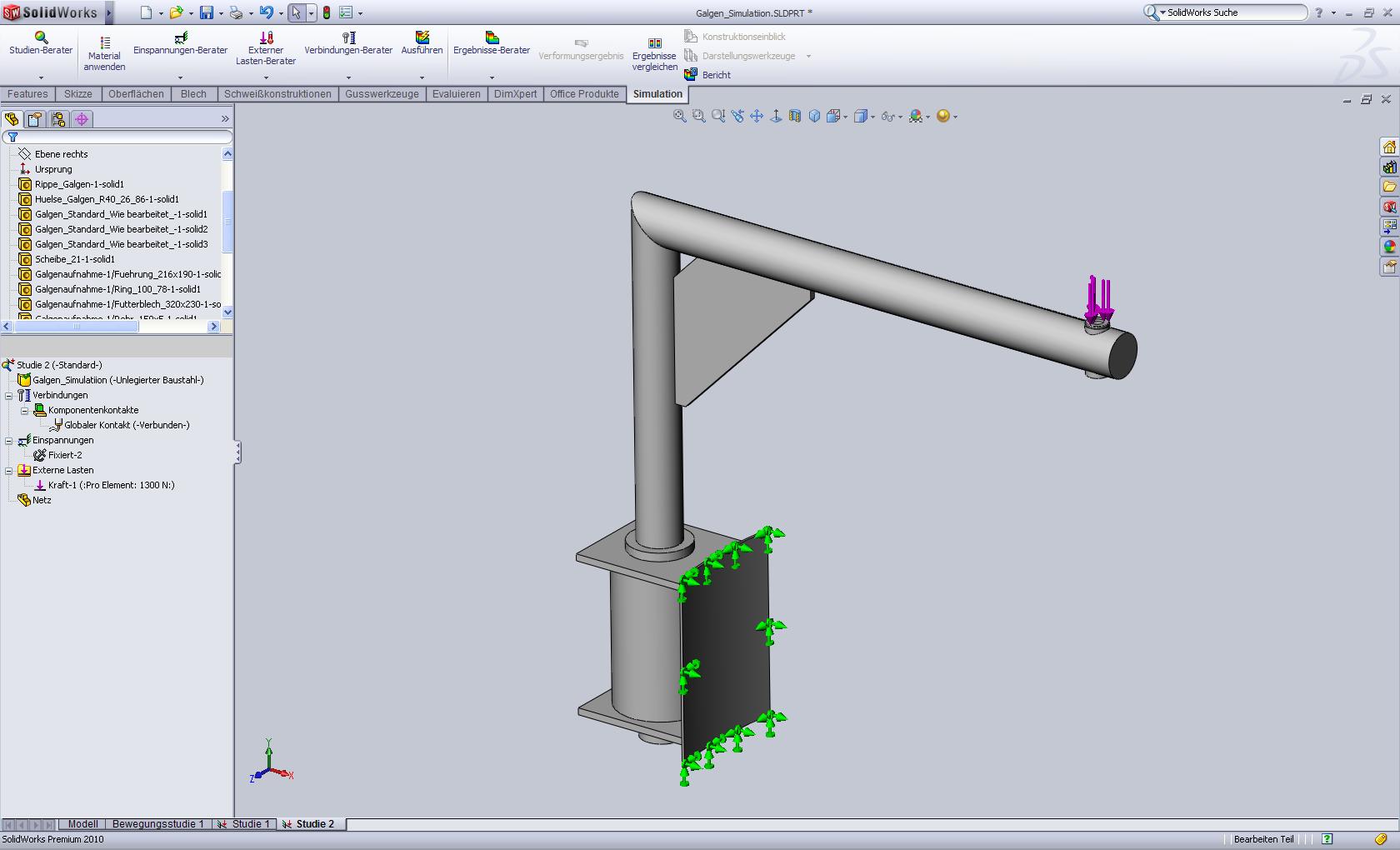 Mich wundert auch, warum die Rohre des Galgens in der verbundenen Ecke nicht mehr ganz dargestellt werden. Das Netz scheint nur der Skizze zu folgen, soll aber natürlich komplett verschweißt sein. Das Simulationsergebnis wird nicht mitgespeichert, weil die Studie laut SWX  fehlgeschlagen ist. Oder gibt es eine Möglichkeit, die fehlgeschlagene Studie mit zu speichern, damit ersichtlich ist, was ich verkehrt mache? Eine Antwort auf diesen Beitrag verfassen (mit Zitat/Zitat des Beitrags) IP |
