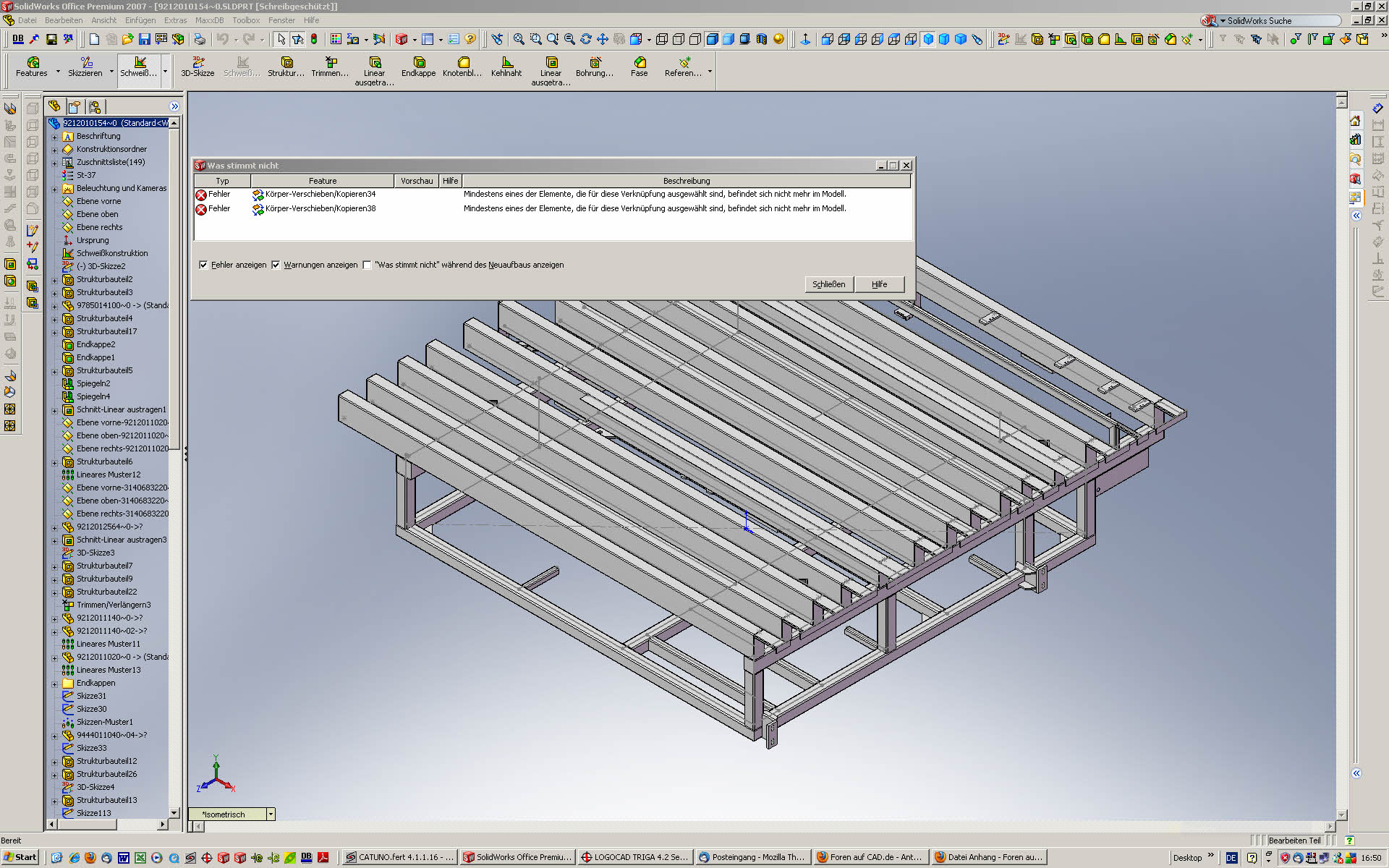 In den Schweißkonstruktionen fügen wir Bauteile ein. Modifiziert man dann die Schweißkonstruktion und löscht wieder eingefügte Teile, dann kommt es ab und zu vor, dass eine Fehlermeldung auftaucht.