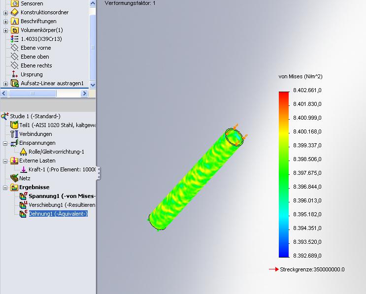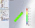 > Ich habe mal die Einspannung"Rolle/Gleitvorrichtung" verwendet. Habe ich nun getestet: Ergebnis wie bei den letzten tests: bis zu einer gewissen Kraft wird das teil einfach außer mitte verschoben (siehe anhang). Über dieser gewissen kraft folgt dann unendliche Verschiebung. Funktioniert also nicht. > Die Auflagerung nicht fixiert, sondern nur in normaler Richtung definierst? Damit verhinderst du das Entstehen von Querspannungen durch die Lagerung. gleichs Ergebnis wie oben. Funktioniert nicht. > Weitere Freiheitsgrade lassen sich recht gut eleminieren, indem du bei den Studieneigenschaften die "Soft Spring Methode" aktivierst. Damit packt SWX SIM die Teile "in Watte", aber fest! gleichs Ergebnis wie oben. Funktioniert nicht. > Du die Berechnung in einer Brg. durchführst? Damit kannst du den Kraft-einleitenden Stempel mit abbilden... Die Kontaktbedingung "keine Penetration" würde dann noch zwischen den beiden Teilen definiert -> voilá. Werde ich als nächstes testen. Nur: A) muss der Stempel dann unendliche Festigkeit haben. B) Es ist nur merkwürdig. dass für die einfachste aller FEM-Berechnungen so ein Aufwand nötig sein soll. Kann ich fast nicht glauben.