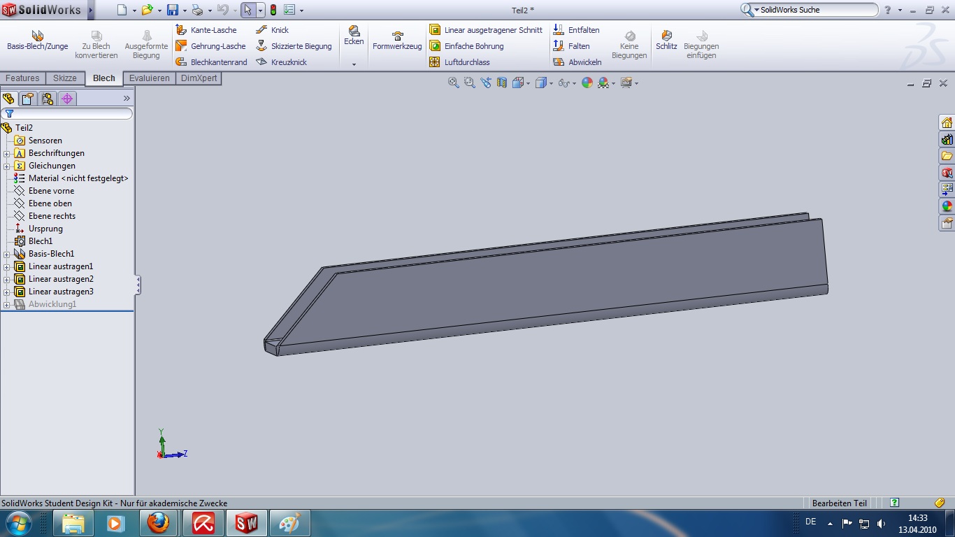 Hallo, doch, ich glaub schon, daß ich Blech konstruiert habe. Oder nicht ? Ich ging in den Blech-Raiter und habe dann ein Basis-Blech/Zunge verwendet. Daraufhin habe ich ein U skizziert, dem ich eine Gesamtlänge von 300 gegeben habe. War das falsch ? Viele Grüße, Silke Eine Antwort auf diesen Beitrag verfassen (mit Zitat/Zitat des Beitrags) IP |