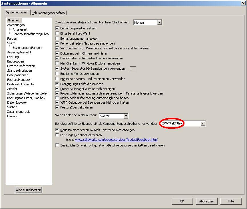 Hallo Rohwi, die Eigenschaft, die Du verändern willst, ist scheinbar nach SolidWorks Definition keine benutzerdefinierte Dateieigenschaft. Ich habe eben mal die Version 2006 getestet (da hab' ich SW-Titel(Title) zum ersten Mal verwendet), da und auch in 2003 (da wurde das mit der Komponentenbeschreibung eingeführt) geht das nur als "read only". Ist mir vorher nie aufgefallen  Der Vorteil, das im Windows Explorer anzeigen zu lassen, ist natürlich sehr reizvoll. Eine Alternative dazu bietet der Hitteam Explorer Extension: http://www.hitteam1.de/Home.aspx -> Freeware -> Hitteam Explorer Extension... Da kann man auswählen welche benutzerdefinierte Dateieigenschaft in einer Windows Explorer Spalte angezeigt werden soll. HTH & bis demnäx, Ralf ------------------ Eine Antwort auf diesen Beitrag verfassen (mit Zitat/Zitat des Beitrags) IP |