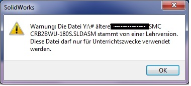 Ist vermutlich wie bei mir, da kam der Hinweis auch. Aber eben nur einmal, Haken dran für "in Zukunft nicht mehr anzeigen" und dann fiel es mir nicht mehr auf... Am besten die Teile noch einmal neu zeichnen, umspeichern geht soweit ich weis nicht. Angeblich haben die/ein Reseller ein Tool mit dem sie das umändern können, sollte man sich über länger Zeit alle Projekte mit sowas verseucht haben (irgendwann im Forum gelesen). Aber wegen ein-zwei Teilen werden die dieses ominöse Tool sicher nicht rausrücken. Gruß Robert