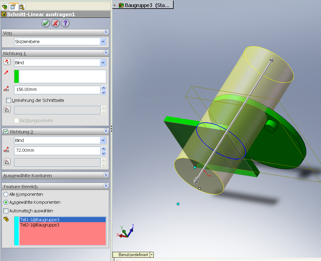 Hey Leute, habe eine kleine Baugruppe, in dem oberen Teil ist ein Flachsenkung und ins untere soll dazu die passende Gewindebohrung. Wollte jetzt ins untere Teil mit dem Bohrungsassi das Gewinde reinmachen.... Wo dann der Schritt gekommen ist wo man die positionen angibt, habe ich die Position von der Flachsenkung mit "Elemente übernehmen" übernommen, allerdings bleiben diese Positionen blau > also unterdefienert! Gibt es eine Möglichkeit damit diese die Referenz vom oberen Teil übernimmt??? schon mal danke! MFG J Eine Antwort auf diesen Beitrag verfassen (mit Zitat/Zitat des Beitrags) IP |