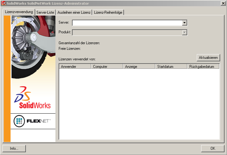 Ich würde trotzdem auf deinem Rechner überprüfen ob die Lizenz läuft. Start-->Programme-->SolidWorks-->SolidWorkstiools-->SolidWork Networks Licencemanager-->Lizenzverwendung hier müsste die Lizenz drinstehen. ------------------ Gruß bbonisch Eine Antwort auf diesen Beitrag verfassen (mit Zitat/Zitat des Beitrags) IP |