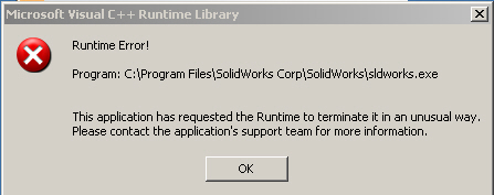 Hallo Joscha P., mittlerweile ist der SP3 für SWX 2010 draußen. Ich würde dir empfehlen, den zu installieren. Dabei werden dann auch evtl. korrupte DLL's o.ä. behoben. Ich gehe davon aus, dass du dir die Visual-C++-Runtime zerschossen hast. ------------------ ========== Gruß Andreas ========== Eine Antwort auf diesen Beitrag verfassen (mit Zitat/Zitat des Beitrags) IP |