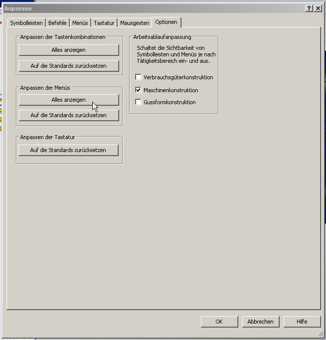 Hallo, habe ein Problem mit einem Rechner in unserer Abteilung. In einer Baugruppenzeichnung ist eine SW-Stückliste eingefügt (xxx.sldbomtbt). Markiert man eine Zelle, kann man in der Regel mit "rechte Maustaste" Einfügen Zeile oder Spalte die Liste erweitern. Bei einem Rechner ist der Menüpunkt "Einfügen" nicht vorhandren ???!!! Bei allen anderen schon, und es geht auch. Schon probiert: - andere Zeichnungen getestet, gleiches Ergebnis - gleiche Zeichnung auf anderen Rechnern geöffnet ( auch im Schreibschutz) --> geht - Optionen verglichen --> ok - im pull down Menü über "Menü anpassen" (ganz unten) --> Eintrag "Einfügen" nicht vorhanden kann also auch nicht aktiviert werden - Rechner neu gebootet --> keine Veränderung - SW neu gestartet --> keine Veränderung Hat jemand noch eine Idee woran das liegen kann ?
