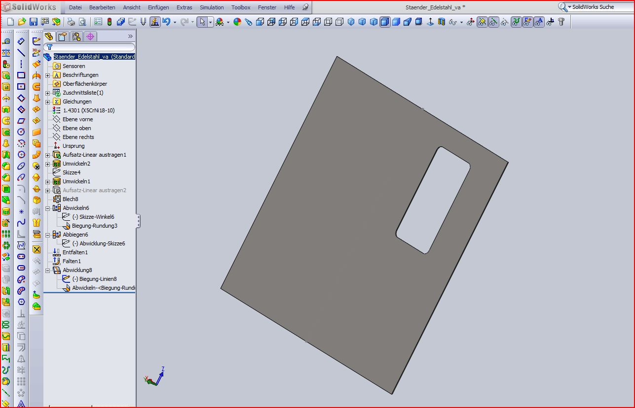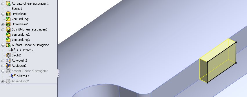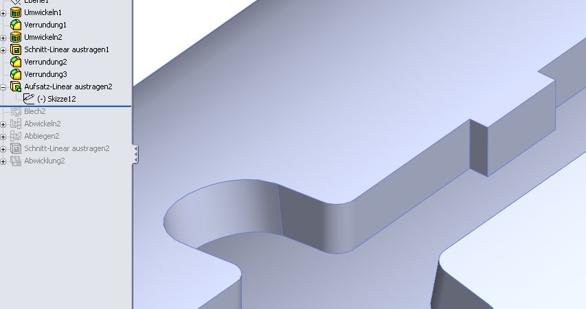 Das Problem besteht darin, dass das "Blech" nur eine Wandstärke haben darf. Wenn dein 2. und 3. Feature unterdrückt wird, geht es. Eine lästige Einschränkung von SWX , aber eine, mit der ich normalerweise gut leben kann. Grüße Günter Eine Antwort auf diesen Beitrag verfassen (mit Zitat/Zitat des Beitrags) IP |