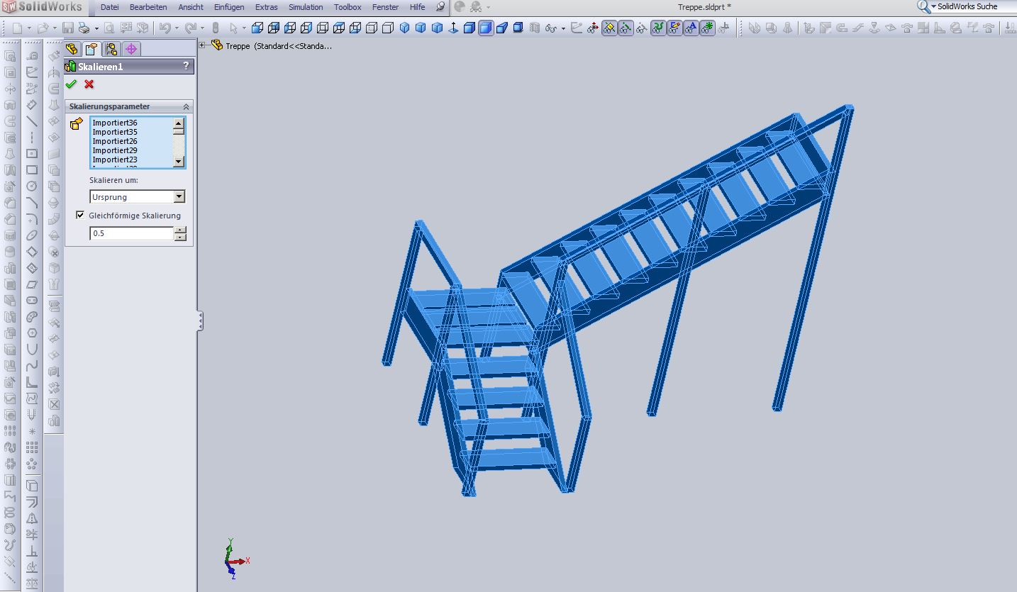 Hallo, hab ich doch schon gesagt Skalieren noch nicht ausprobiert? Funzt nur im Einzelteil , daher Baugruppe ais Part speichern und dann entsprechend skalieren. MfG Andreas