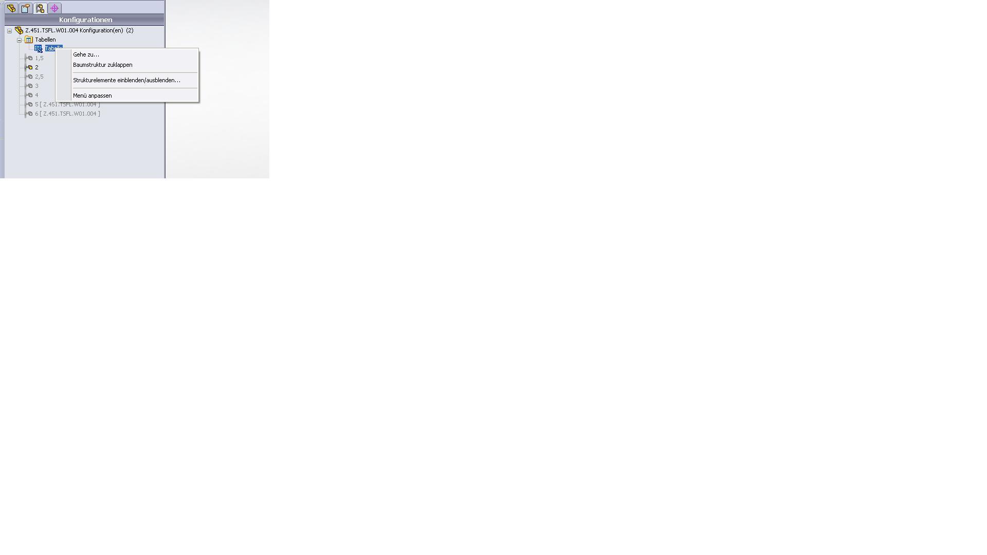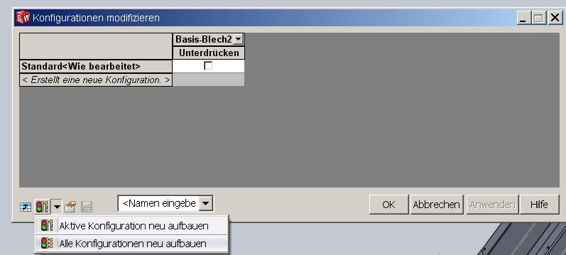 Hallo Daniel, die erste Variante funktioniert auch bei Konfigurationen, die auf Excel-Basis erstellt wurden. Bei Teil gehst du mit der RMT auf ein Feature und dann auf Feature konfigurieren. Bei einer BG auf ein Teil und dann Komponente konfigurieren. Dann geht dieses Fenster auf bei dem du dann sagen kannst alle Konfigurationen aktualisieren. PS. Das Verhalten deiner assoziativen Tabelle in der Zeichnung ist ein Bug. Dieses Problem haben wir auch. ------------------ Gruß bbonisch Wer nicht träumt, der ist tot.  Eine Antwort auf diesen Beitrag verfassen (mit Zitat/Zitat des Beitrags) IP |