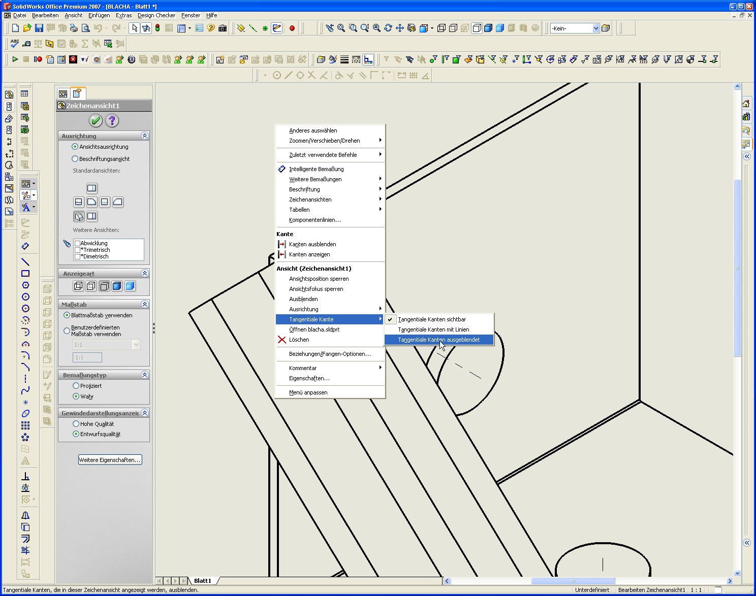 Hallo, ich hab in einer Baugruppe eine benutzerdefinierte Ansicht erstellt und wollte jetzt in der Zeichnung die Tangentialen Kanten ausblenden, aber mit einfach anklicken und "Kanten einblenden/ausblenden" klicken geht es nicht. Wisst ihr noch eine andere Möglichkeit? Eine Antwort auf diesen Beitrag verfassen (mit Zitat/Zitat des Beitrags) IP |