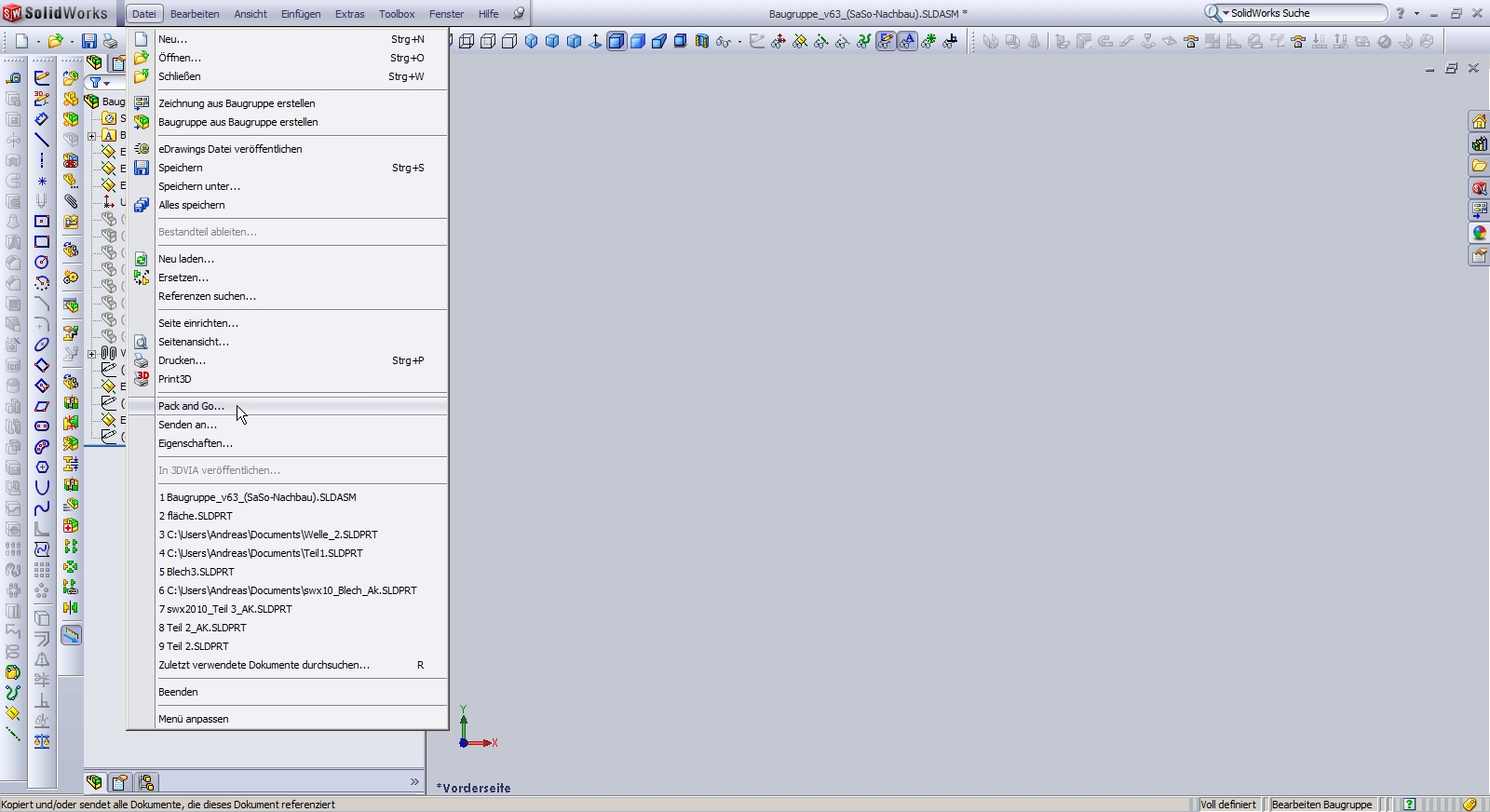 Hallo, auf Deinem Screenshot ist die Baugruppe unterdefiniert So kann ich Dein Problem leider nicht erkennen. Am besten mal Baugruppe überdefiniert hochladen. Dabei bitte die Umlaute im Dateinamen weglassen (ÄÖÜß) die mag nicht jeder Browser  MfG Andreas