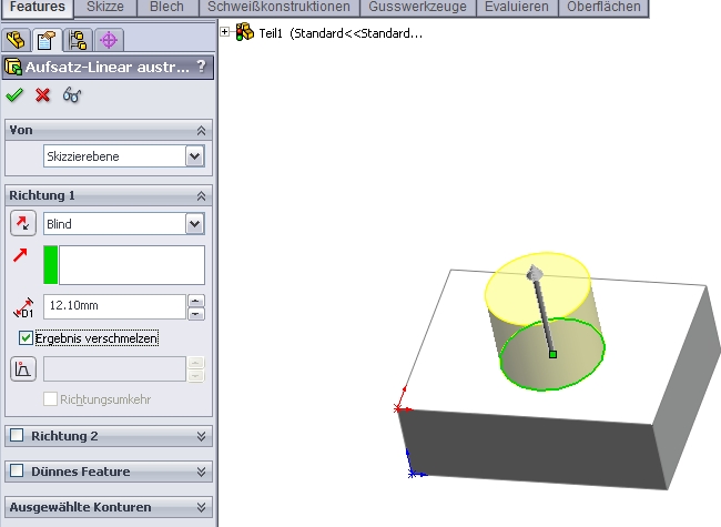Ein Mehrkörperteil kannst du erstellen, wenn du bei der Featureerstellung das Häkchen "Ergebnis verschmelzen" deaktivierst. Du kannst auch zwei Features erstellen, die sich nicht berühren. Grüße Günter Eine Antwort auf diesen Beitrag verfassen (mit Zitat/Zitat des Beitrags) IP |