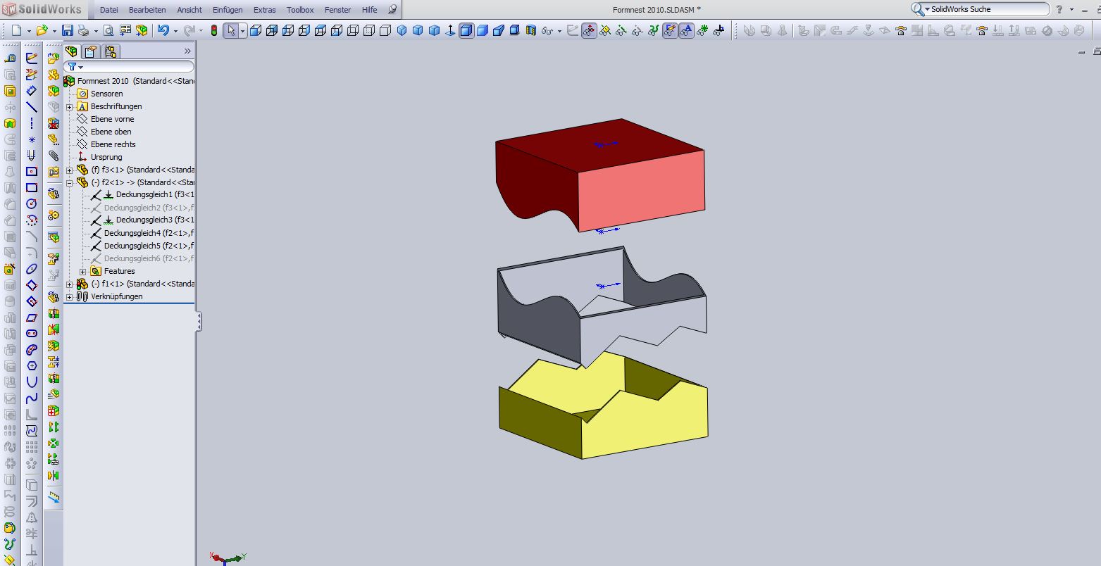 Hallo wiedereinmal Gemeinde der konstruktiven Hilfe Ich ich knaubel schon wieder eine Weile im Selbsttudium an folgendem Promblem. Ich möchte eine Hülle eines Gerätes aus drei Teilen machen. Die Gesamtform habe ich da. Diese habe ich dann noch zweimal kopiert und erneut in die Baugruppe eingefügt. Aus einem machte ich das Ober-, aus dem anderen das Unterteil. Nun fehlt mir das Teil dazwischen. Das obere und untere Teil kann man ja frei Hand mit Splines gestalten. Die Mitte jedoch muss exakt auf beide passen. Darum dachte ich mir: Nehmen wir noch einmal dieses Gesamtteil, und ziehen die beiden anderen davon ab. Dann bleibt ja ein Rest, der genau dazwischen passt. Habe hier schon ein wenig gesucht, bin auf Funktionen wie Abspalten gestoßen, habe jedoch keine Ahnung wie ich das mit anderen Teilen anwenden kann, da ich es nur in der Einzelteilbearbeitung anwählen kann. Ich verwende SW 2010. Vielen Dank für Eure Hilfe, mir rennt die Zeit so langsam weg. Beste Grüße Steffen Eine Antwort auf diesen Beitrag verfassen (mit Zitat/Zitat des Beitrags) IP |
