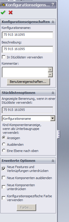 Was verstehst du unter "entfernt"? Gelöscht? Oder unterdrückt? Wenn du eine Komponente oder ein Feature aus einem Modell löschst, dann gilt das für alle Konfigurationen. Wenn du diese Komponente oder das Feature in einzelnen Konfigurationen beibehalten willst, dann darfst du es nur unterdrücken. ------------------ Klaus www.al-ko.com | mein Gästebuch | privat... | Nasenheim Eine Antwort auf diesen Beitrag verfassen (mit Zitat/Zitat des Beitrags) IP |