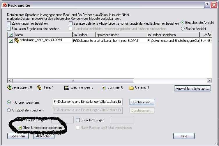 Pack & Go ist einer der Gründe, weshalb ich die Daten neu verschieben und ordnen möchte. Mit pack&go ist alles in einem Verzeichnis gelandet, wo es vorher an einem anderen Ort strukturiert in Unterdirectories stand. Mag sein, das es falsch bedient wurde ? Jedoch möchte ich den Datenwust wieder aufsplitten und ordnen. Alles in einem Ordner ist einfach unübersichtlich. Auch beim import von Stepdateien landet alles in einem Ordner. [Diese Nachricht wurde von kmw am 17. Mrz. 2011 editiert.] Eine Antwort auf diesen Beitrag verfassen (mit Zitat/Zitat des Beitrags) IP |