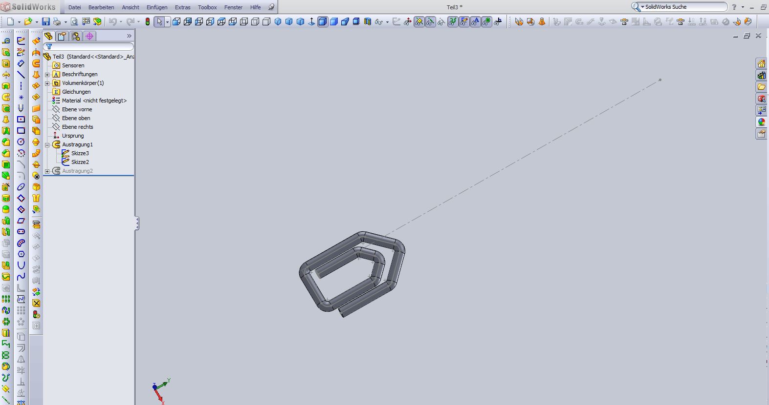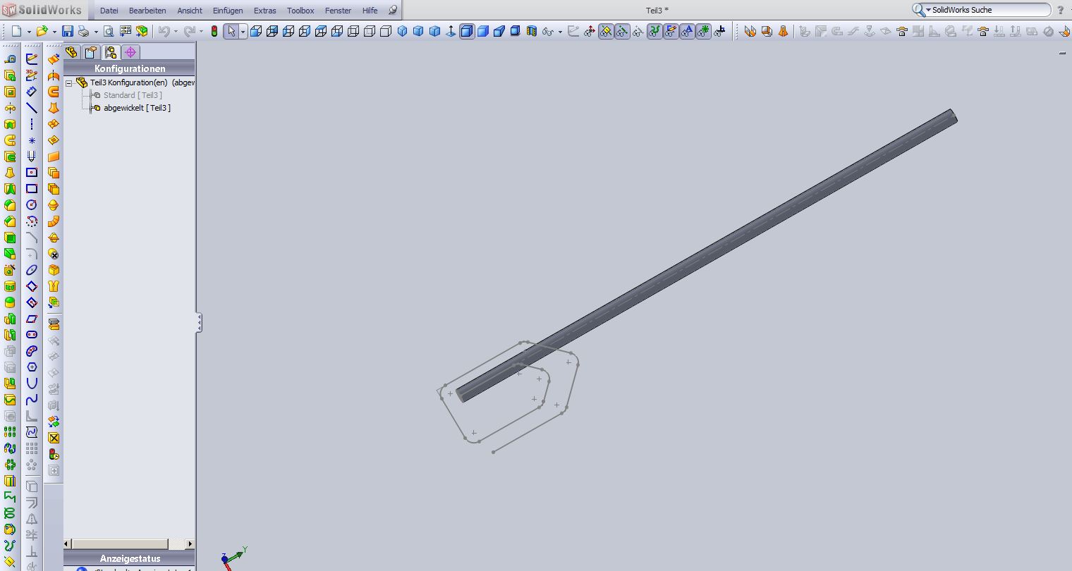 Hallo miteinander Kleine Denkaufgabe an die Profis unter euch. Folgendermassen, da ich gerne ein Rohrsystem konstruieren möchte, welches erstellt wird anhand eines Bahnprofils, stosse ich auf gewisse Schwierigkeiten. Da ich eine Abwicklung benötige dachte ich, ich konstruiere es als blech. Die funktioniert aber nicht wie gewünscht, da ich ein Rohrprofil benötige. Daher nun mein erster Post in diesem Forum. Um mein anliegen einwenig besser zu vermitteln, könnt ihr euch vorstellen dass ich gerne eine Büroklammer erstellen möchte. Als erstes möchte ich mit der Bahn beginnen (siehe Bild). Nun kann ich beim Blechfeature keine 2te Skizze für das Profil anwählen. Auch war es mir nicht möglich eine Austragung zu erstellen und diese dann zu einem Blech zu konvertieren. Ich hoffe ihr versteht was ich zu erreichen versuche. Gruess Retniw