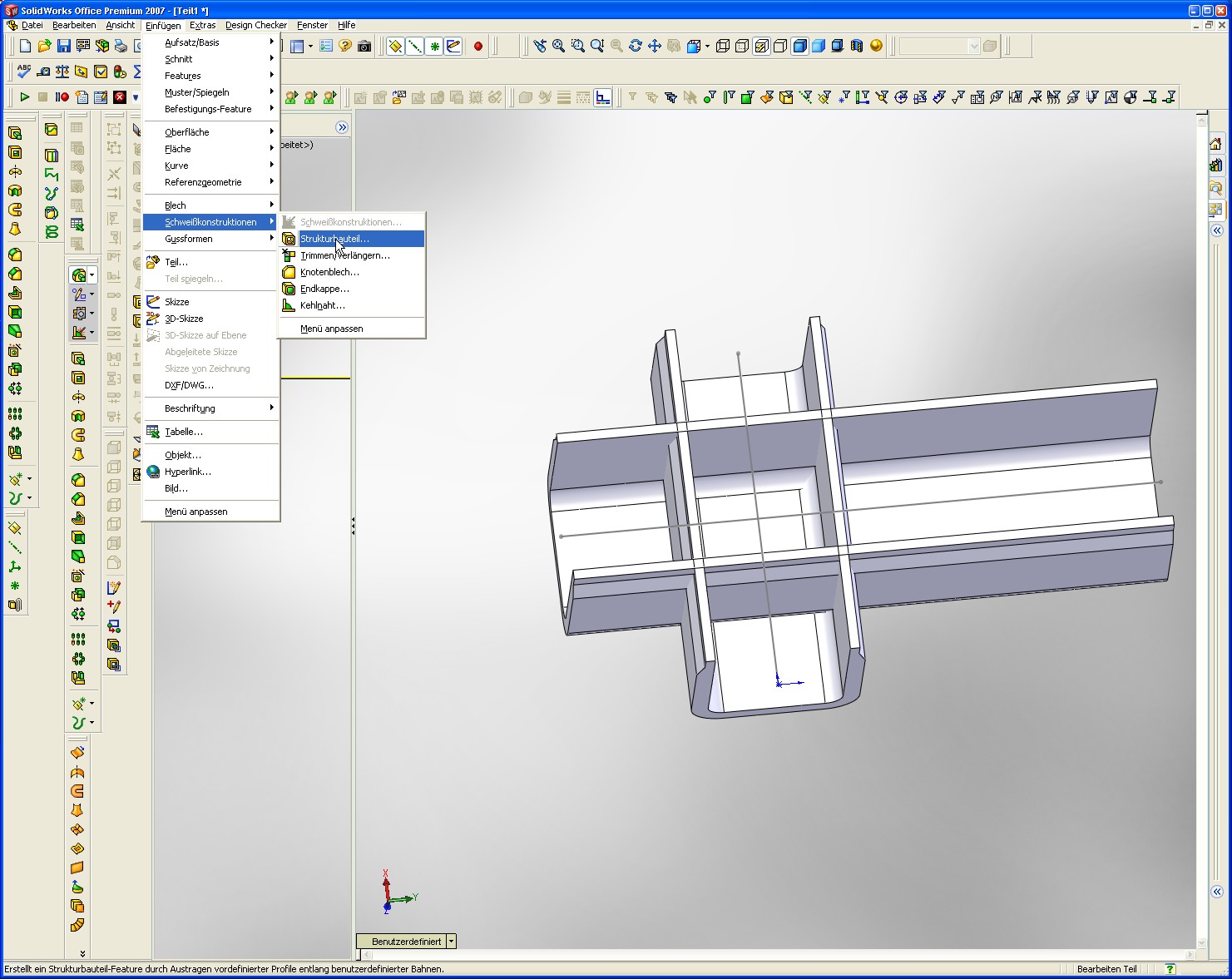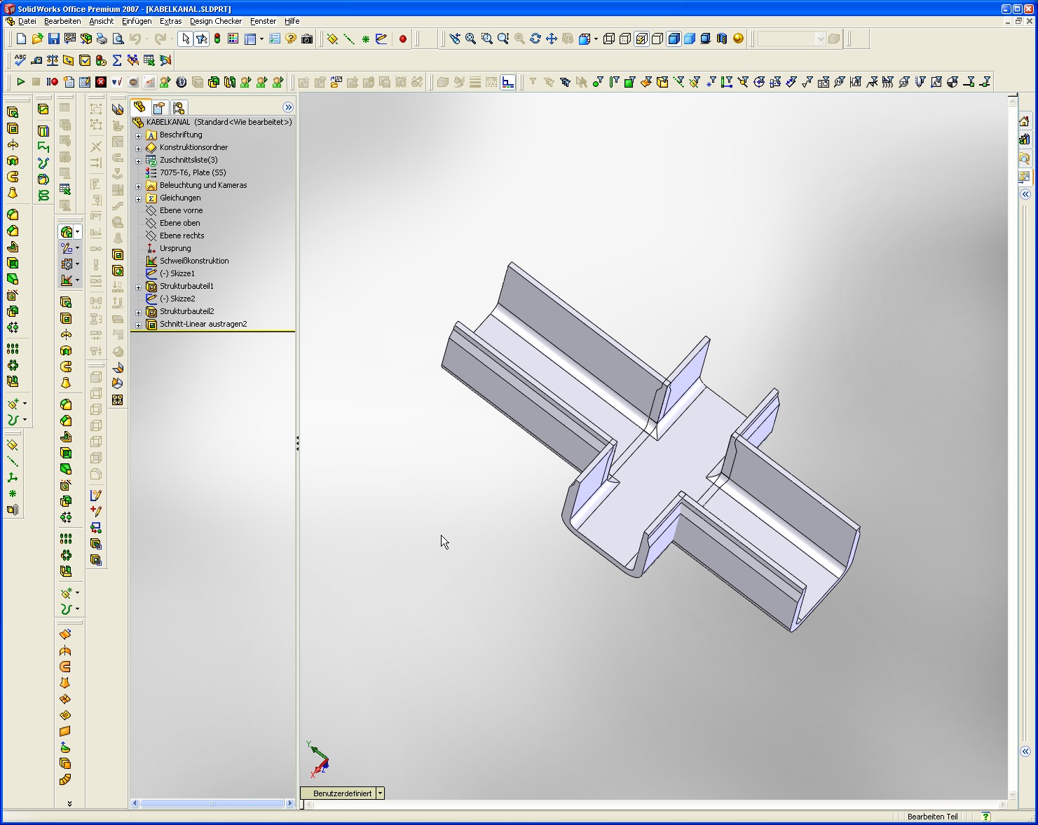 besten Dank für das Beispiel! Hab damit selber mal etwas gespielt - es verhält sich jedoch so, dass ich nicht einfach einen T-Abzweig herstellen oder nachträglich einfügen kann. Beim Aufbau gibt es dort dann ein Problem. Zusätzlich muss die Skizze an der Stelle wohl getrennt sein. Es ist also nicht einfach möglich, in eine Gerade einen Abzweig einfach einzufügen. Oder ich schaffe es nicht. Wie erstellt man denn die Pofildateien? Eine Antwort auf diesen Beitrag verfassen (mit Zitat/Zitat des Beitrags) IP |