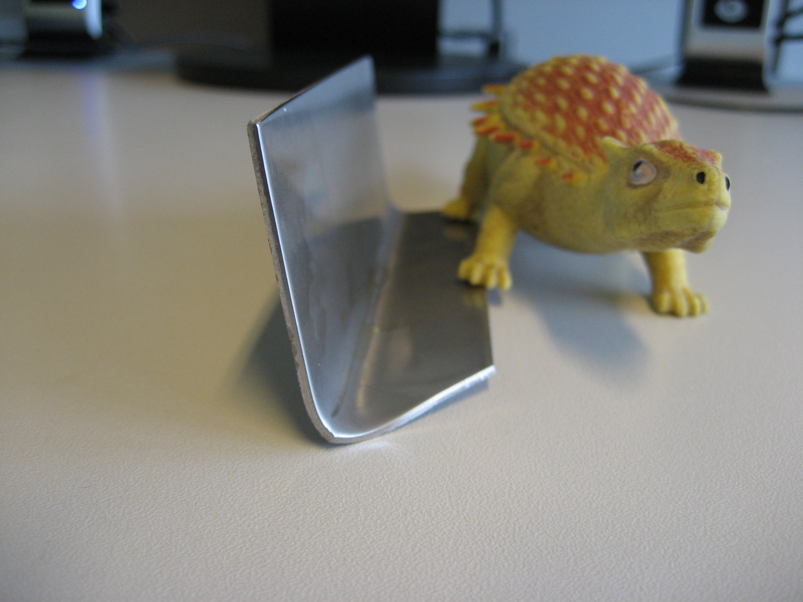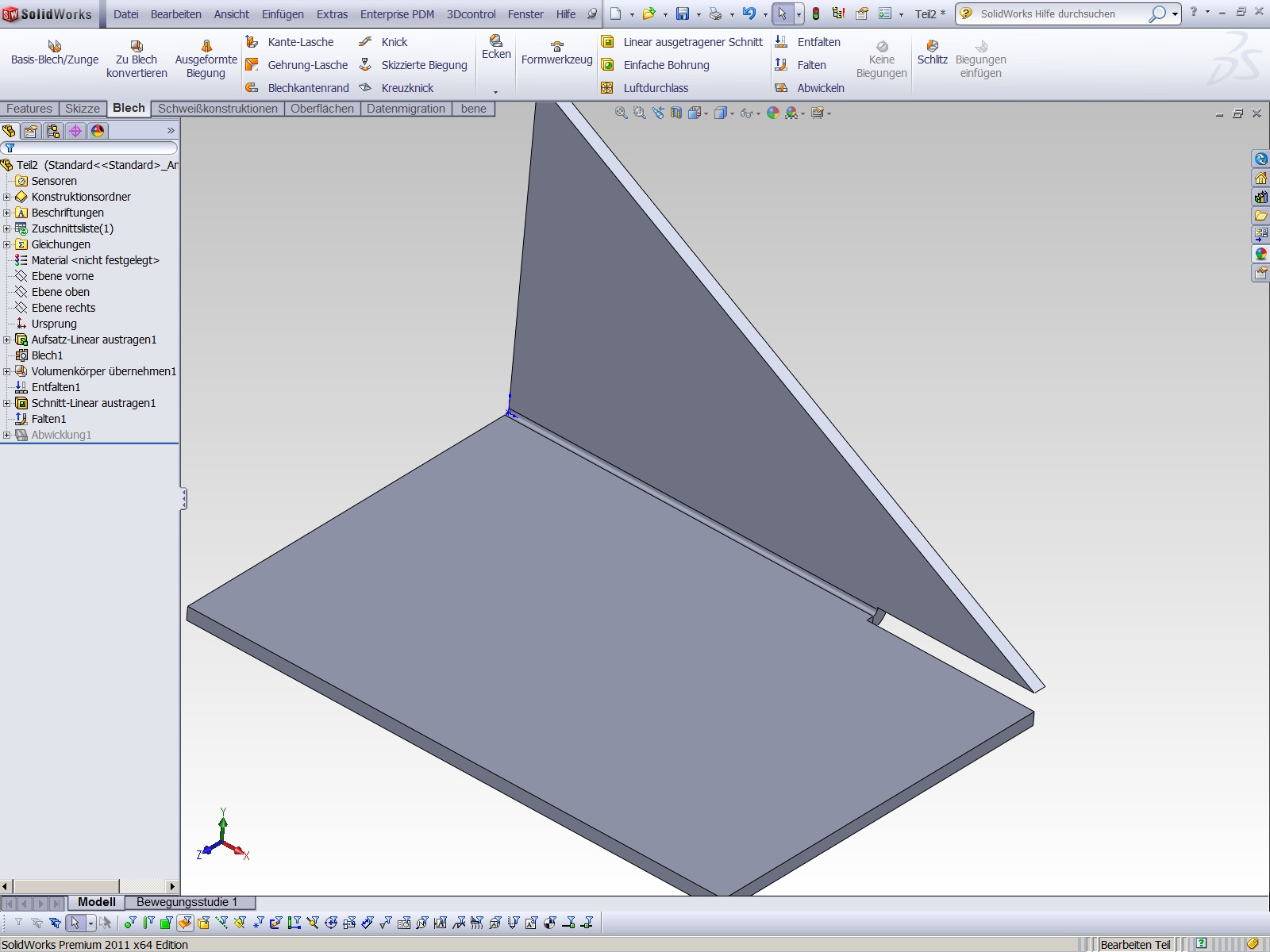 Es ging nicht um den Schlitz, sondern um das Ergebnis des Umformvorganges bei schräger Ausklinkung: Welcher Kunde kauft gerne einen schön geschlitztes Teil, wenn das fertige Blechteil verbeult ist? [Edit vom 14.4.2011 abends:] Die Lösung mit dem Schlitz auf der Biegeachse ist möglich und funktioniert einwandfrei, würde von meinen Kunden jedoch nicht akzeptiert. Das wäre bei dünnen Blechen im Ergebnis ein sehr leicht verbiegbarer Fleischhaken, der üble Schnittverletzungen erzeugen kann. [\Edit vom 14.4.2011 abends]