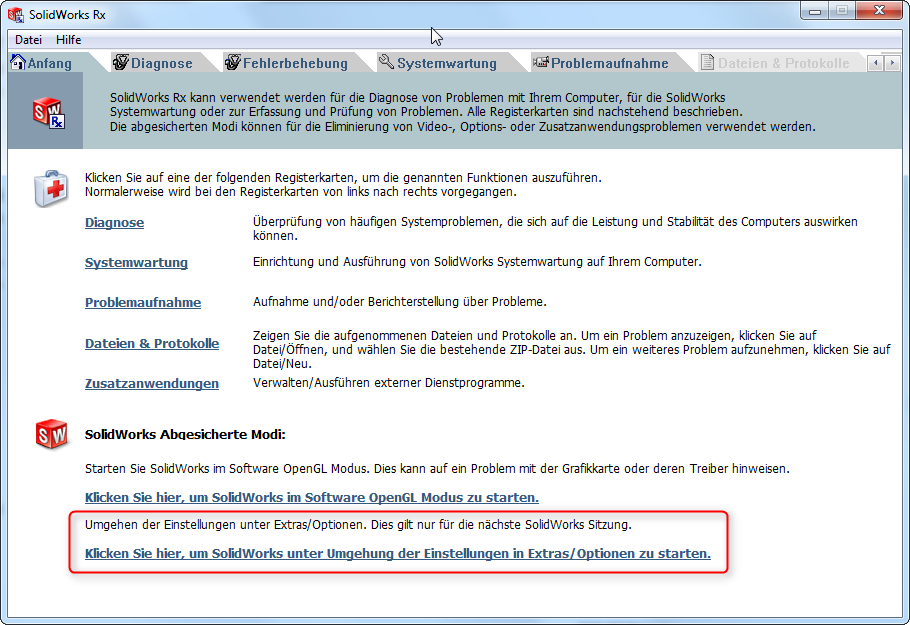 Hoffentlich war Dein Virenscanner bei der Neu-Installation deaktiviert. Guckst Du dazu mal hier ...Eine Idee habe ich noch: Starte Dein SWX doch bitte mal aus dem RX-Tool heraus "unter Umgehung der Einstellungen unter Extras/Optionen..." Damit hast Du ein neues SWX-Benutzerprofil, dann ist Dein SWX also quasi jungfräulich Wenn das Einfügen von Referenzgeometrie dann funktioniert, dann war in Deinem Benutzerprofil ein Schuss. Das ist nicht schön, aber lösbar. Wenn das Einfügen von Referenzgeometrie dann immer noch nicht funktioniert, spätestens dann solltest Du Dich mit Deinem Reseller in Verbindung setzen, damit sich ein Fachmann der Sache annimmt. Vielleicht gibt es ja tatsächlich eine Konstellation, in der SWX reproduzierbar abstürzt. Dann sollte SWX das wissen, um es beheben zu können. ------------------ Viele Grüße Uwe Mahner CSWP CSWST CSWI CSWE DPS Software GmbH Eine Antwort auf diesen Beitrag verfassen (mit Zitat/Zitat des Beitrags) IP |