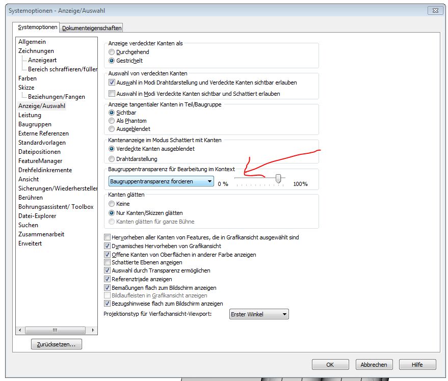 Die anderen Teile werden transparent, aber deren Kanten bleiben weiterhin anwählbar. Diese Transparenz kann man auch ausschalten, siehe Bild. Grüße Günter Nachtrag: Das Bild ist aus SWX 2011. Ich hoffe, es sieht im 2009 genau so aus. [Diese Nachricht wurde von GWS am 18. Aug. 2011 editiert.] Eine Antwort auf diesen Beitrag verfassen (mit Zitat/Zitat des Beitrags) IP |