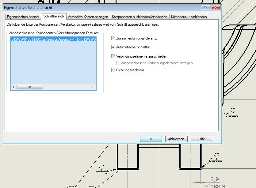 Nochmal gaaanz laaaaamgsaaaam: Rechte Maustaste auf die fragliche SCHNITTANSICHT, im sich daraufhin öffnenden Kontextmenü EIGENSCHAFTEN auswählen, im sich daraufhin öffnenden Fenster die Registerkarte SCHNITTBEREICH auswählen. 1. Option: Jetzt mit der linken Maustaste in der SCHNITTANSICHT auf die "nicht zu schneidenden Komponenten" klicken, sie erscheint nun in der blau hinterlegten Auflistung. WENN man nun auf OK klickt, dann sind die ausgewählten Komponenten ausgeblendet. Hurra. 2. Option: Man kann auch tatsächlich im Featurebaum die "nicht zu schneidenden Komponenten" auswählen. Dazu öffnet man im Featurebaum die fragliche SCHNITTANSICHT und wählt die Komponenten aus. Sie werden dann in der Ansicht auch leicht hervorgehoben und erscheinen in der blau hinterlegten Auflistung. WENN man nun auf OK klickt, dann sind die ausgewählten Komponenten ausgeblendet. Hurra. Kleine Einschränkung: Ich habe hier im Moment nur SWX 2011 zur Verfügung, es sollte aber auch in 2010 klappen! ------------------ Viele Grüße Uwe Mahner CSWP CSWST CSWI CSWE DPS Software GmbH Eine Antwort auf diesen Beitrag verfassen (mit Zitat/Zitat des Beitrags) IP |