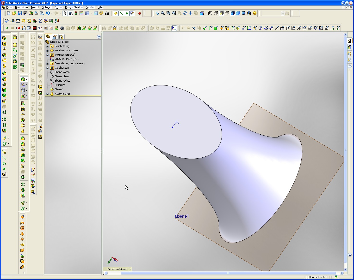 Hallo Alex, versuch es mal mit dem Feature ausgeformte Basis. Du gibst die beiden Ellipsen als Profile an und kannst dann deine Bahn-Skizze als Leitlinie verwenden. EDIT: Datei in SWX 2011 angehängt ------------------ ========== Gruß Andreas ========== [Diese Nachricht wurde von ad_man am 09. Sep. 2011 editiert.] Eine Antwort auf diesen Beitrag verfassen (mit Zitat/Zitat des Beitrags) IP |