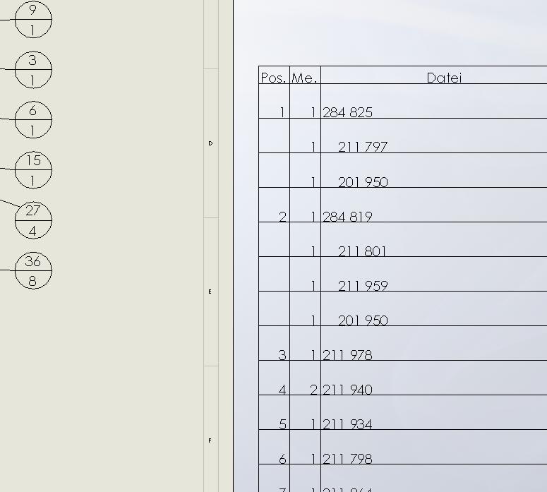 Guten Morgen zusammen, folgendes möchte ich gerne -natürlich mit eurer Hilfe  - umsetzen: Im alten 2D Programm wurden die Stückliste so aufgebaut, dass man Normteile gleich als Unterpositionsnummern zu den entsprechenden Bauteilen geschrieben hat. Beispiel Pos. 5 Antriebswelle Pos. 5.1 Sicherungsring Pos. 5.2 Passfeder So konnte der Monteur gleich erkennen, was für Verbindungselemente er auf dem entsprechende Bauteil montieren musste In SWX werden die Teile ja automatisch zusammen gezählt- so bleibt einem nur die Möglichkeit den Haken "Mehrere refernzierten Kopien ignorieren" bei der automatischen Positionsnummerngenerierung raus zu machen. Habt ihr hier eine elegantere Lösung ? Danke für eure Bemühungen Brödlahans ------------------ EHEC- die mit dem roten Stuhl - frei nach ibash Eine Antwort auf diesen Beitrag verfassen (mit Zitat/Zitat des Beitrags) IP |