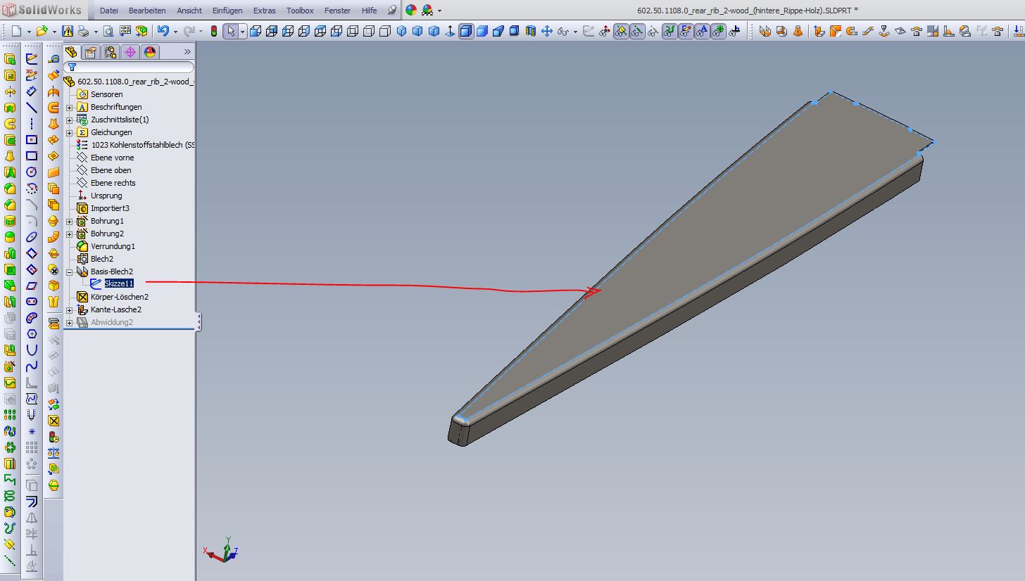 Ich habe mir die Kontur von dem Holz genommen und daraus ein aufgetragenen Aufsatz erstellt. Ist das falsch? Kann ich denn direkt ein Blech mit der Kontur des Holzes erstellen?