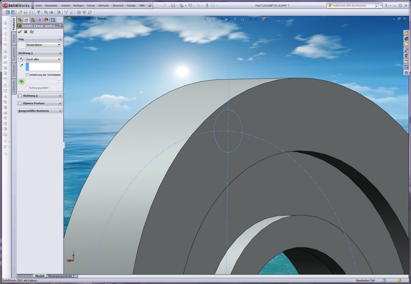 Also ich weiss nicht, seit wann SWX  so eine Mimose ist... aber... Hier die Situation: Ich möchte auf der Planfläche des Drehteils (Rückseite vollkommen plan, keine Eindrehungen) eine Bohrung plazieren. Diese soll durch das komplette Teil gehen.... auf der Seite, wo die Bohrung dann wieder raus kommt, krazt sie eine Freidrehung an... ja... und? Ist ja eigentlich kein Problem... habe ich schon oft gemacht... doch heute verweigert mir SWX  diesen einfachen Akt.... es würde zu einer Dicke null führen... hmmm... versteh ich nicht ganz... lege ich die Bohrungen auf einen grösseren TK, dann geht es.... steh irgendwie auf´m Schlauch.... kann jemand helfen? Die Bohrungen müssen nun mal genau da hin und müssen auch an dieser Eindrehung rauskommen... kann doch nicht so schwer sein... hmmmm Gruss Ramona ------------------ **Kein Mensch ist so beschäftigt, dass er nicht die Zeit hätte, jedem zu erzählen, wie beschäftig er ist.** Eine Antwort auf diesen Beitrag verfassen (mit Zitat/Zitat des Beitrags) IP |