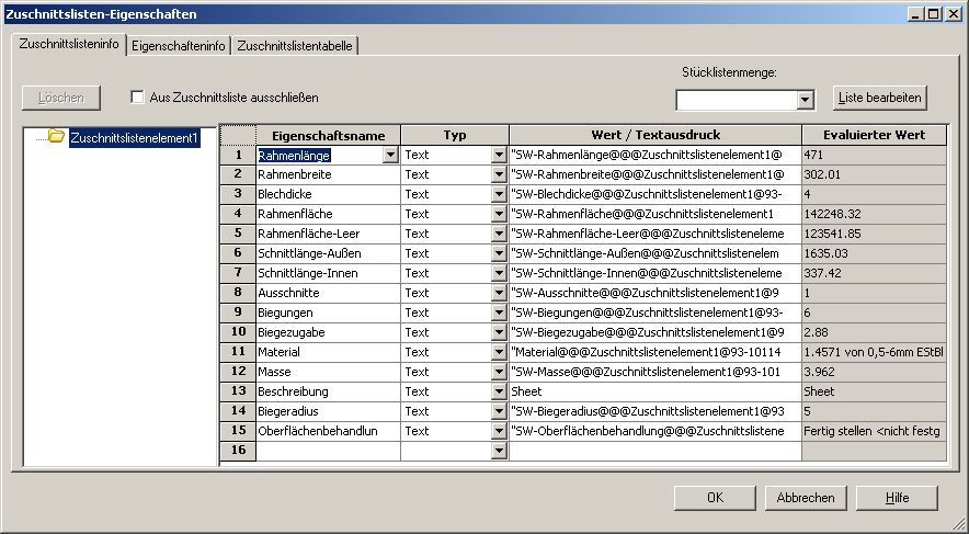 Kann ich diese Werte zB."Rahmenlänge,Rahmenbreite,Blechstärke" irgendwie in die benutzerdef. Eigenschaften des Hauptkörpers verknüpfen?