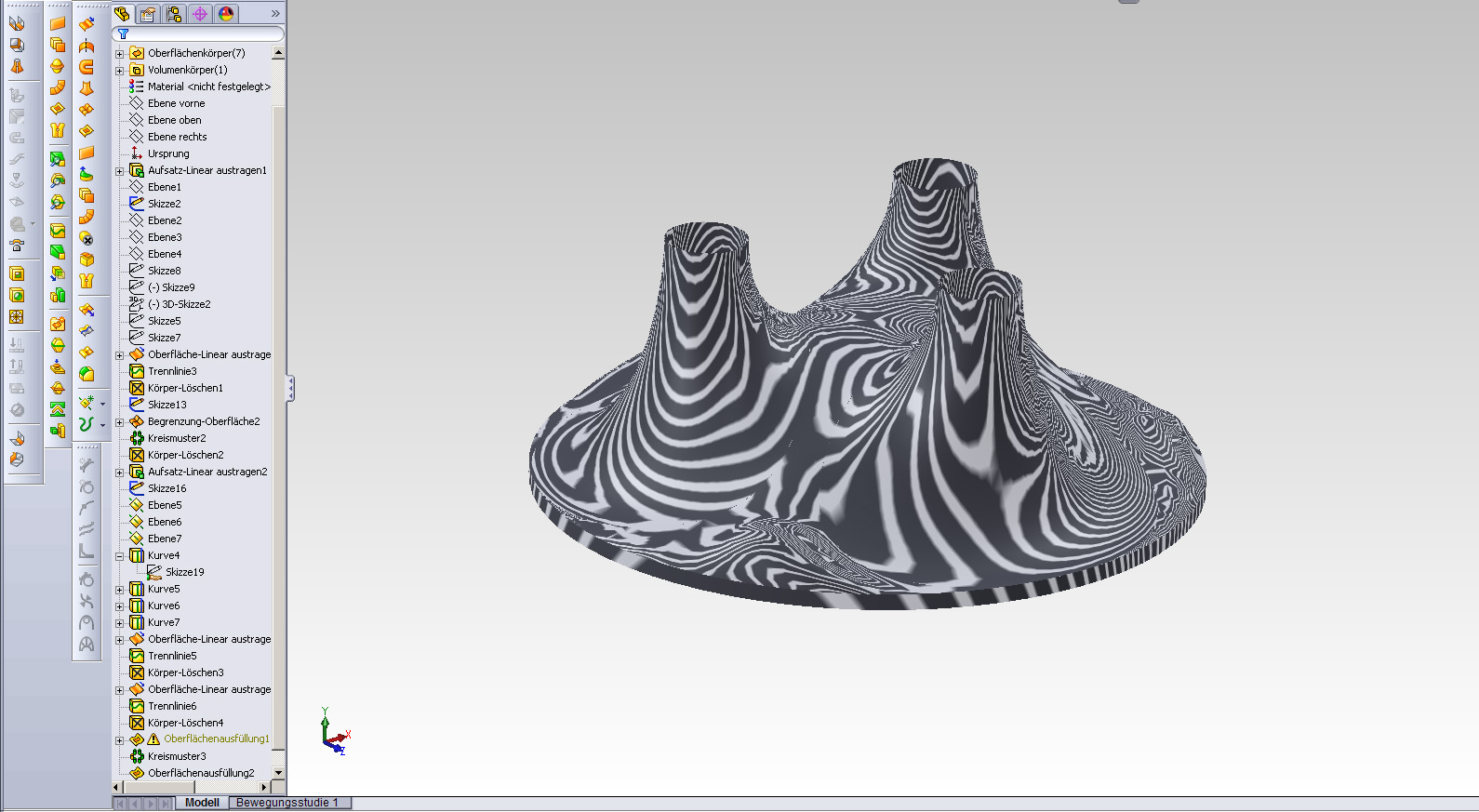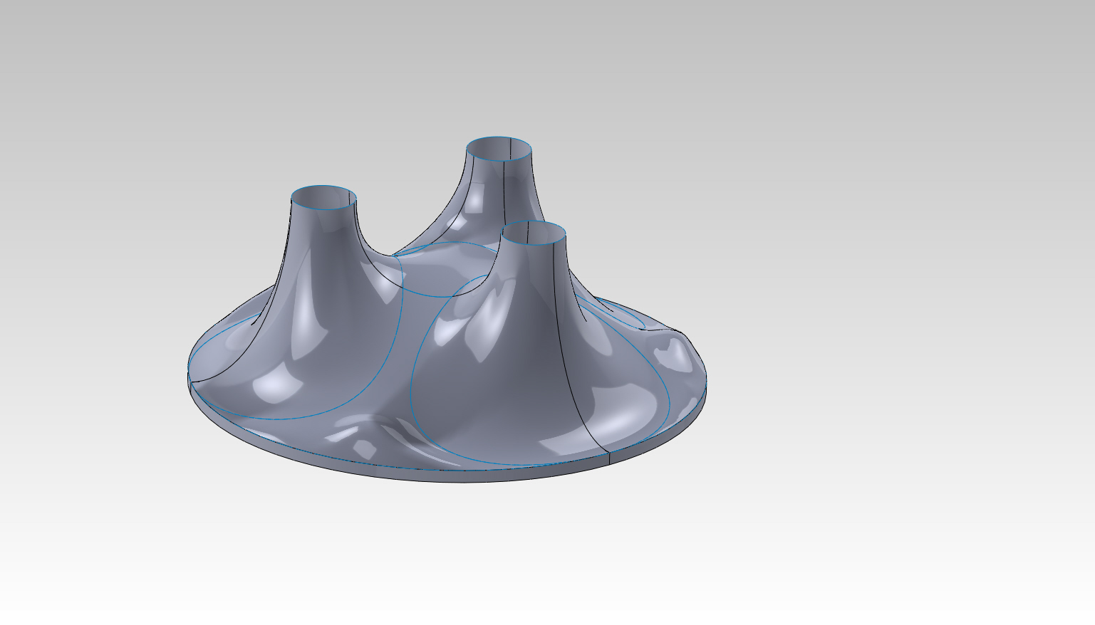 Huhu, vielen Dank für den Link. Hat mir schonmal ziemlich weitergeholfen. Ist zwar nichtmehr so nah an meiner ersten Intention dran, ein Feature zu finden das den ganzen Aufwand vereinfacht, aber dafür hab ich jetzt mit ein bisschen Handarbeit ein ganz brauchbares Ergebnis erzielt. Hab mal zwei Screenshots hochgeladen, einerseits um meine Vorgehensweise etwas zu verdeutlichen, andernseits um nochmal die Chance zu nutzen eine Frage dazu zu stellen. Wie ihr seht, fließt die Fläche jetzt eigentlich ganz sauber. Bis auf die Ausnahme, dass durch die Krümmungsstetigkeit diese 3 "Ausbeulungen" entstanden sind. Kann ich das ganze mit einer "Leitkurve (Kurve mit Zwangsbedingung?)" korrigieren, oder müssten die Grenzkanten grundsätzlich anders liegen, um das Problem zu beseitigen? schöne Grüße, Jonas