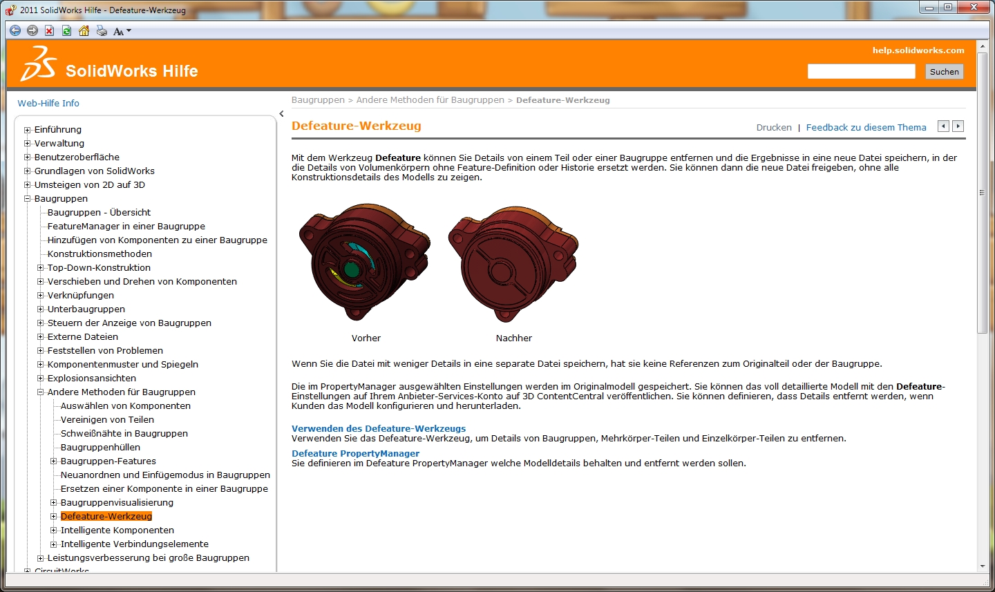 Hallo Leo, ich weis nicht ob ich Dich so ganz richtig verstanden habe, aber es gibt den SpeedPak. Funktionsweise ist die, dass Du eine neue Konfiguration einer Baugruppe anlegst die dann nur optisch dargestellt wird. Du kannst einzelne Flächen auswählen, diese sind dann auch greifbar wenn die Konfiguration irgendwo verbaut ist. Alle nicht gewählten Flächen sind absolut dumm und nicht anwählbar, es kann von dort nichts gemessen werden usw. Selbst gearbeitet habe ich noch nicht damit, ich weis auch nicht wie diese in der Zeichnung aussehen nicht wirklich, ich weis aber dass es auf Zeichnungen nicht aussieht wie normale Teile. vielleicht hilfts gruß Heiko ------------------ ----- Eine Antwort auf diesen Beitrag verfassen (mit Zitat/Zitat des Beitrags) IP |