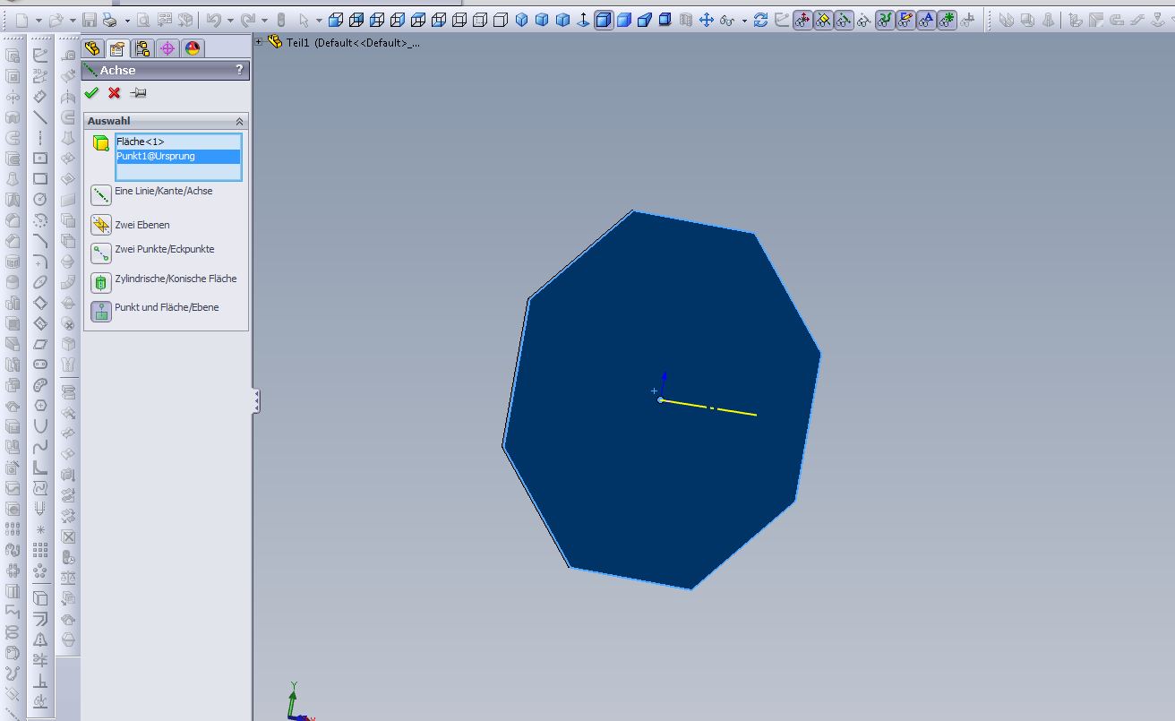 Ja, da hast du wohl recht, so habe ich das auch schon festgestellt. Ich versuche immer irgendwie die professionellste Lösung zu finden, aber ich glaube das ist auch zum großen Teil ansichtsache. Wie man eben mit den Dingen klarkommt. Aber meine Frage ist eigentlich.....ne, ich muss nochmal nachfragen, sorry. Also um auch mal die Referenzgeometrie auf die Reihe zu bringen. Ich habe also meine Platte und will da eine Referenzachse durchziehen. also Einfügen -> Referenzgeometrie -> Achse. Nun will SWX von mir, dass ich eine von den 5 Optionen auswähle. Welche ist das die beste? Vielleicht nehme ich ja einfach immer nur die Falsche. Ich bekomme da nie eine Achse durch den Mittelpunkt hin. Welche Flächen oder Punkte muss ich da auswählen? Ich komme da nicht ans Ziel. Eine Antwort auf diesen Beitrag verfassen (mit Zitat/Zitat des Beitrags) IP |