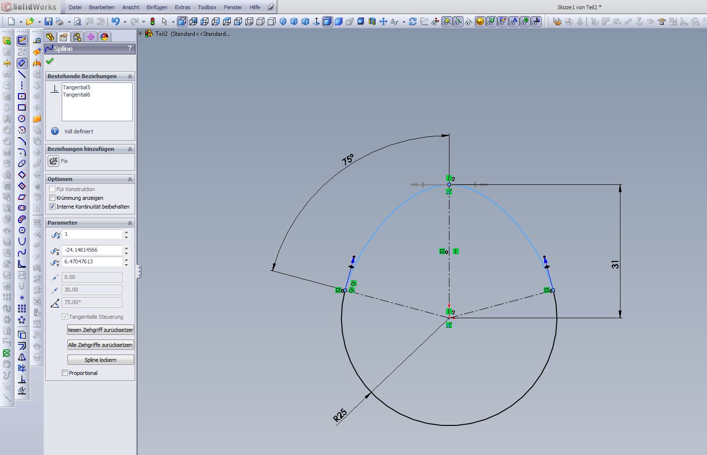 Hallo, mit Spline kann / darf ich hier nicht arbeiten. Ich brauche auf dem Umfang von 180° immer eine gleichbleibende Steigung von z.B. 5°. Mit Spline wird zwar alles schön tangential, aber weiche von der gleichbleibenden Steigung ab. Gruß