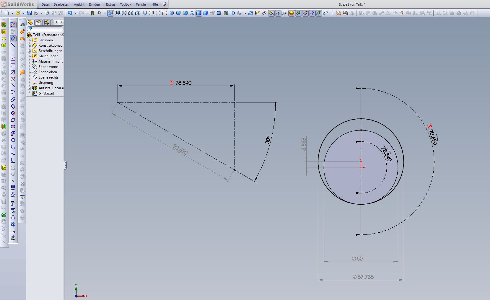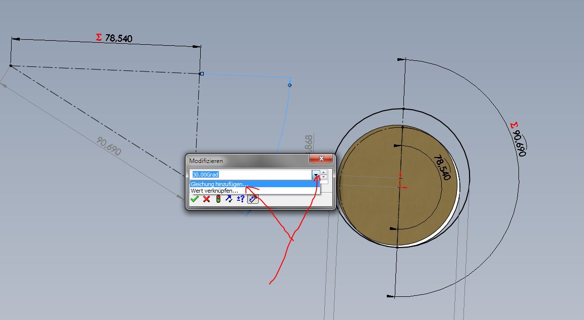 Hallo, nein das ist kein großes Problem Wenn Du noch nicht mit Gleichungen gearbeitet hast nimm einfach Deinen Taschenrechner und bemühe die Winkelfunktionen um die Größe der Durchmesser zu ermitteln. Dann einfach entsprechend bemaßen . Ist aber uncool Klick mal hier drauf (siehe Bild) und spiel mal ein wenig mit rum , dann klappt das schon . Grüße Andreas ------------------ Stillstand ist Rückschritt Eine Antwort auf diesen Beitrag verfassen (mit Zitat/Zitat des Beitrags) IP |