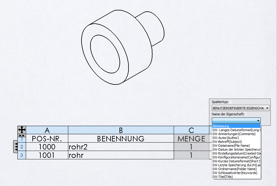 Hallo Andy, erstmal Willkommen im CAD.de-Forum. Es wäre nett wenn du dein Profil vervollständigen würdest, dass eventuelle Helfer wissen mit welcher Version von SWX du arbeitest. Zu Frage 1: Ich denke nicht, dass das möglich ist, kann mich aber auch täuschen. Zu Frage 2: Hier fällt mir nur der Weg über eine benutzerdefinierte Eigenschaft ein. (siehe Bilder) Gruß Bernd ------------------ --- Man muß nicht alles wissen, man muß nur wissen wo es steht --- Staatlich anerkannte Deutschniete  Eine Antwort auf diesen Beitrag verfassen (mit Zitat/Zitat des Beitrags) IP |