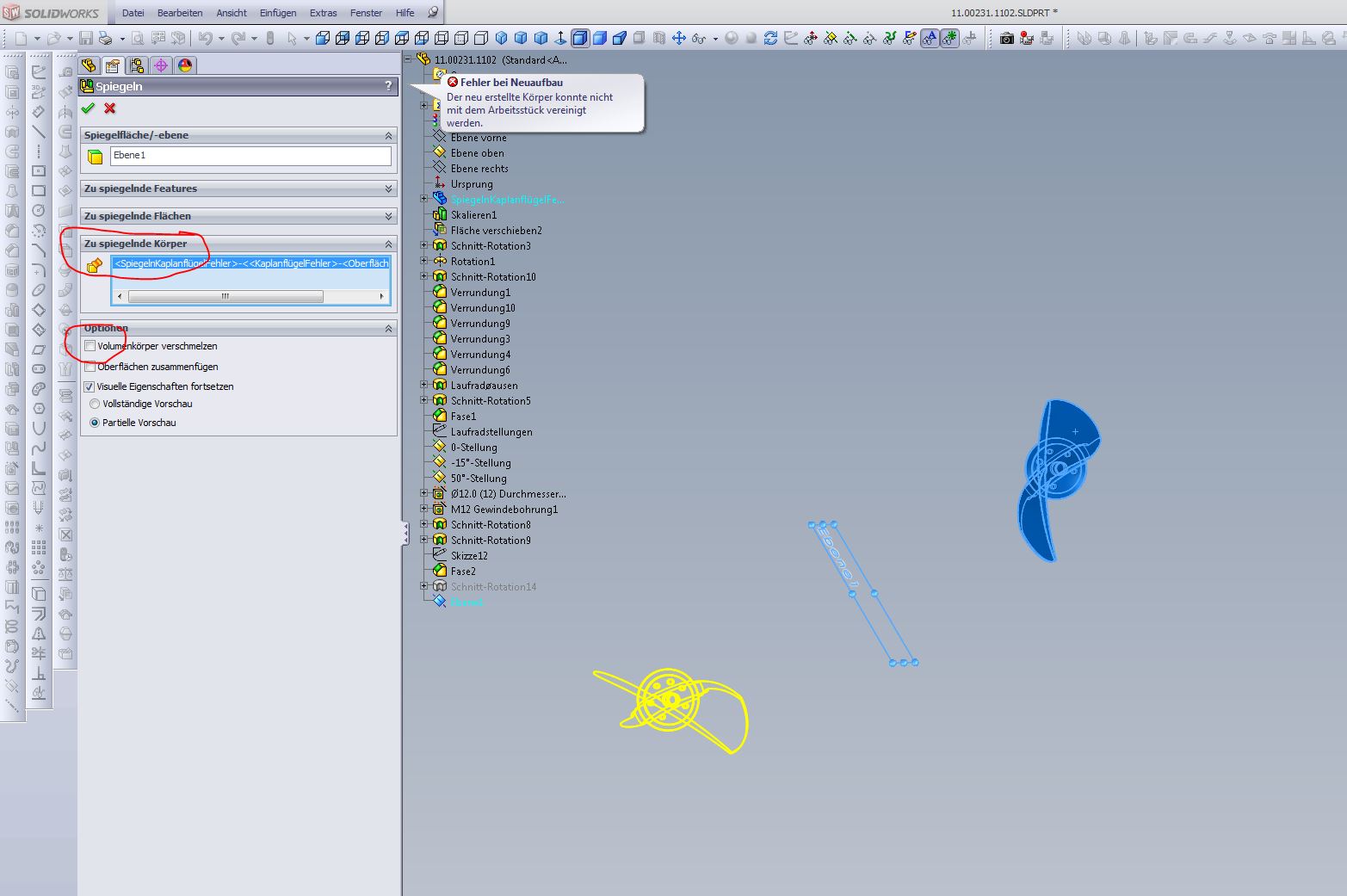 Hallo, KE = KonstruktionsElement = Feature bei SWX ?? hast hier sicher nicht nur mich zum Grübeln gebracht... beim Ersten ist Verschmelzen auch nicht zu sehen, da gibt es ja noch nix zum verschmelzen. ab dem 2. wird aber Verschmelzen angeboten und ist standardmäßig aktiv. Nimmst du den Haken weg, bekommst du auch den Ordner Volumenkörper angezeigt .. und dann gibt es im Menü einfügen-feature-kombinieren (oder über rechte Maustaste bei gewählten Körpern?) ist manchmal tatsächlich sinnvoll einsetzbar ...  viel Spaß noch beim weiteren entdecken. Eine Antwort auf diesen Beitrag verfassen (mit Zitat/Zitat des Beitrags) IP |