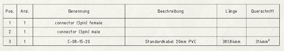 Hallo, im RoutingLibraryManager gehst du in die Kabel-/Drahtbibliothek zur Bearbeitung dieser. Du kannst mit der rechten Maustaste ein Spalte hinzufügen. Dieser gibst du einen aussagekräftigen Namen und trägst bei den Kabeln / Drähten (hier geht das genauso) den Querschnittswert z.Bsp. 20mm² ein. Fertig. In der Tabelle auf der Zeichnung fügst du ebenfalls eine Spalte hinzu, mit der Leitungseigenschaft Querschnitt. Voilà. Gruß, Heiko ------------------ Einen schönen Gruß von Heiko [Diese Nachricht wurde von Heiko Soehnholz am 11. Sep. 2013 editiert.] Eine Antwort auf diesen Beitrag verfassen (mit Zitat/Zitat des Beitrags) IP |